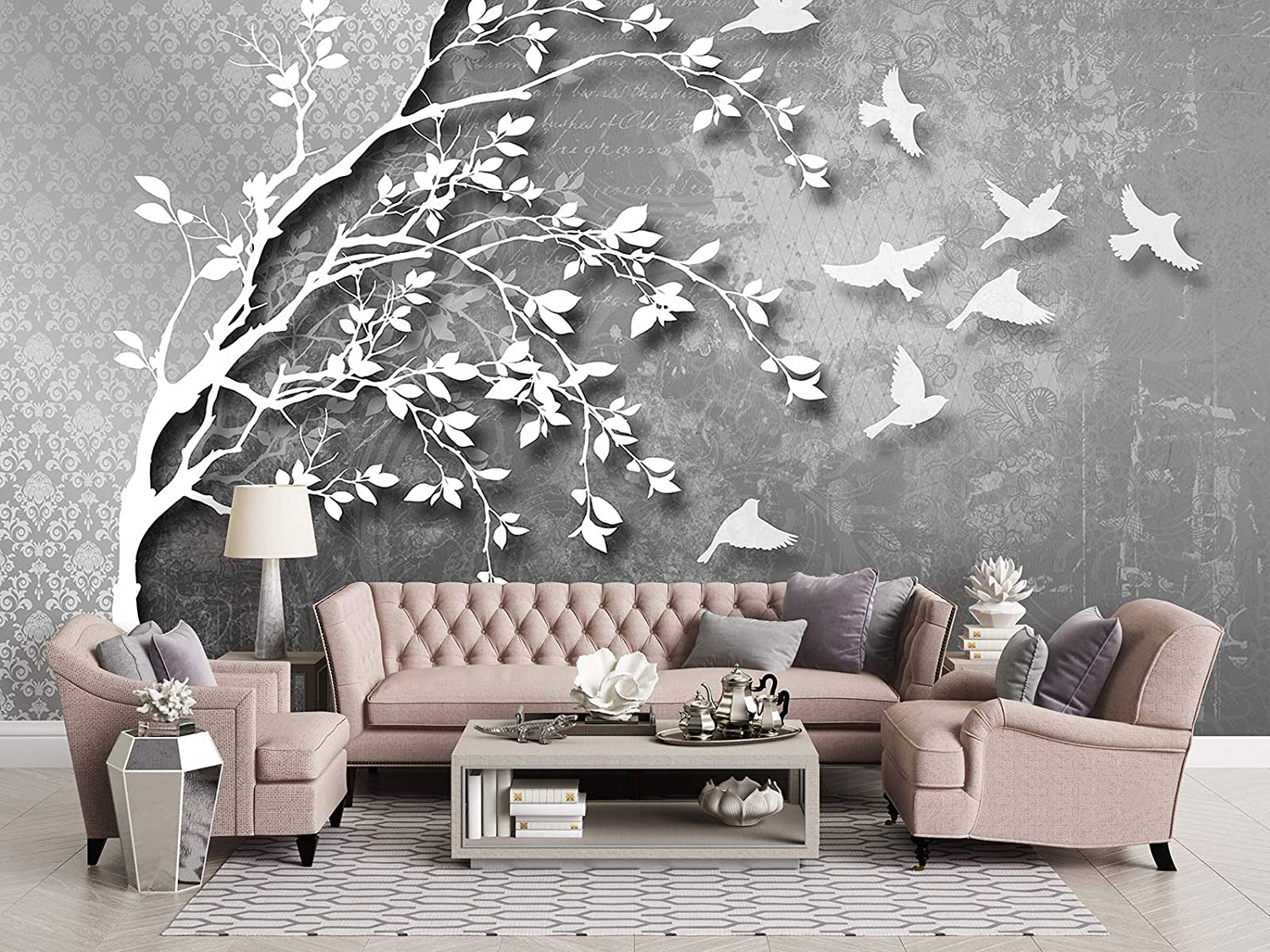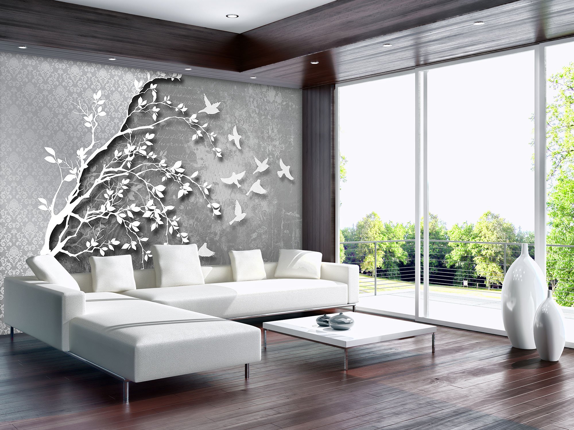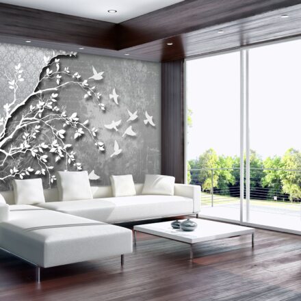 Szürke elegáns fotótapéta, mely klasszikus barokk mintát ötvöz modern, 3d hatású fa mintával. Gyönyörű kompozíció, mely lélegzetelállító hatást kelt a falon.