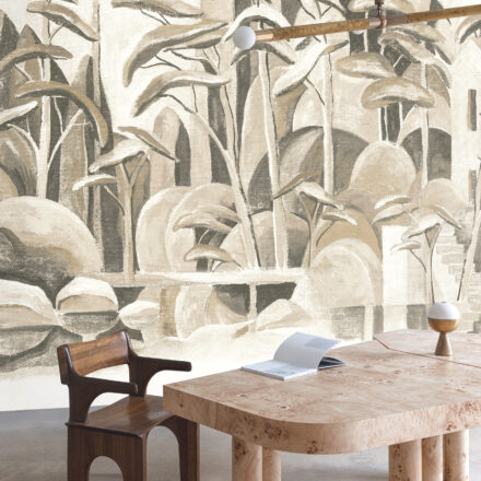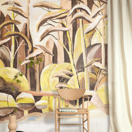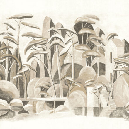 Rajzolt, stilizált fák dekorálják a fotótapéta, melynek exkluzív jelleget kölcsönöz az enteriőrnek.