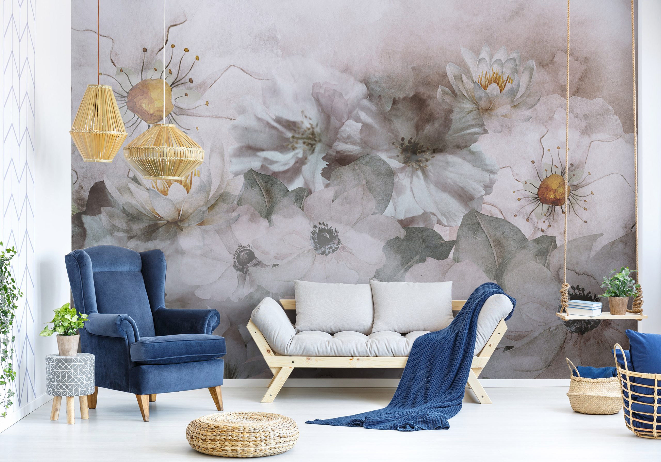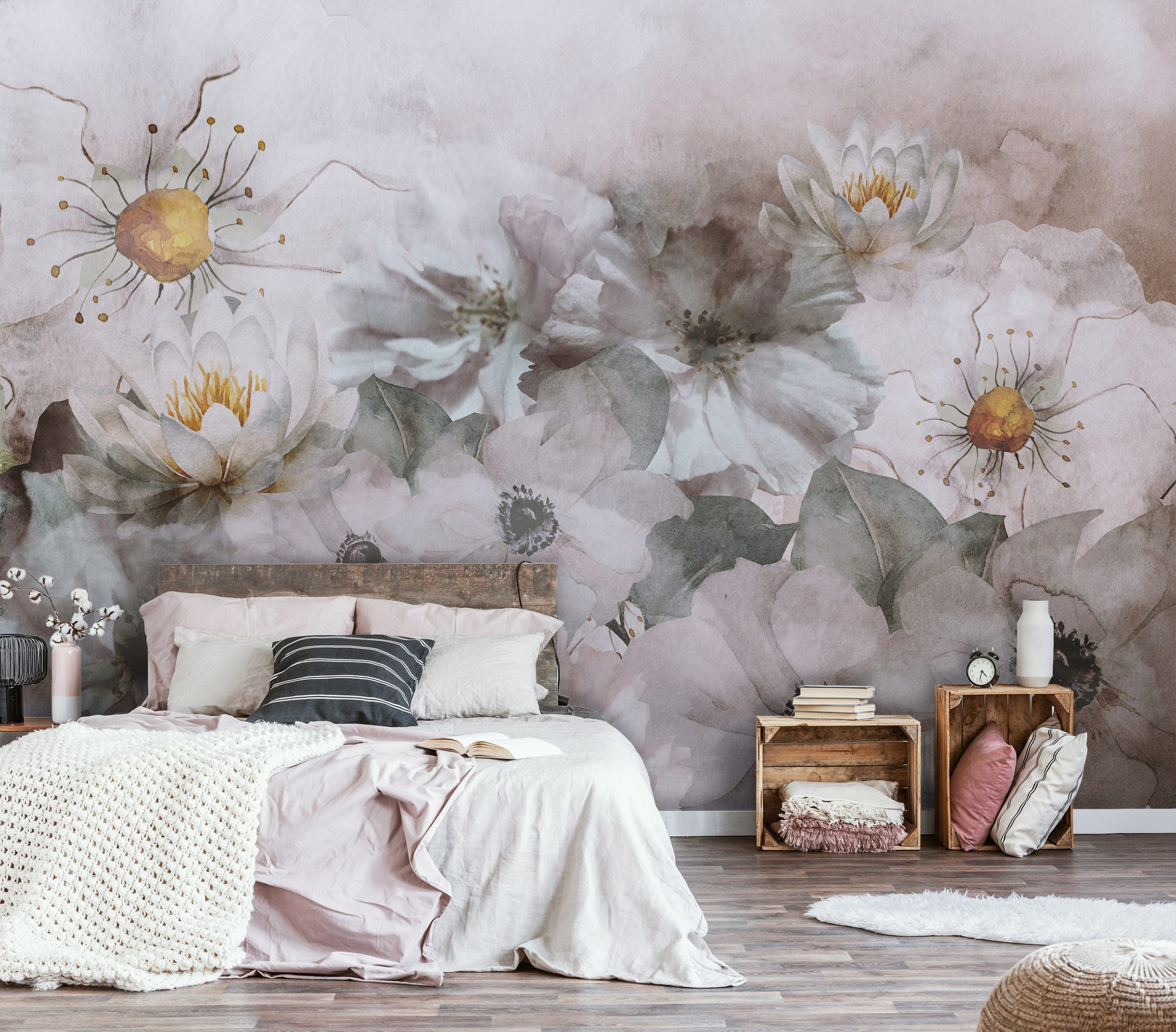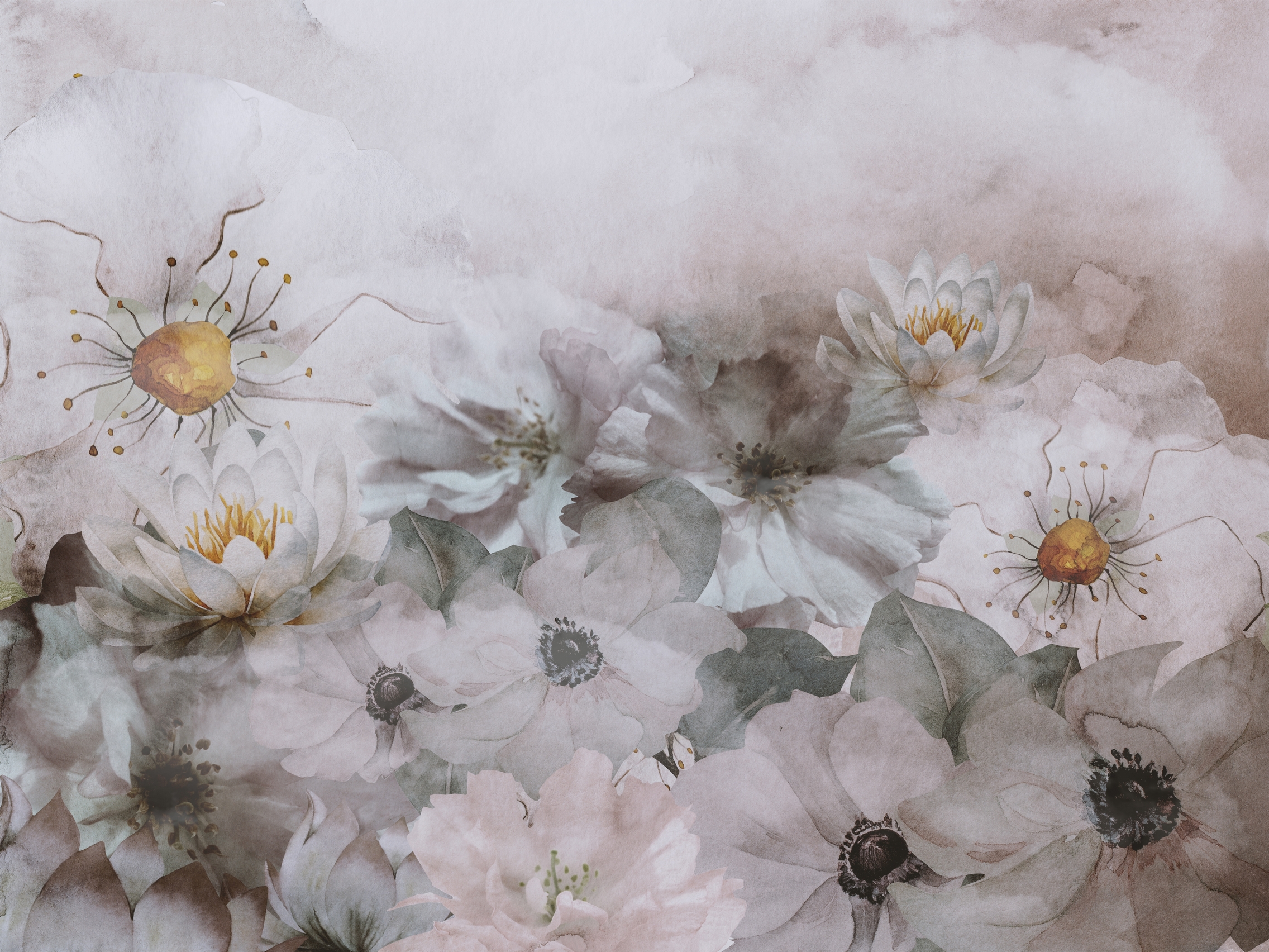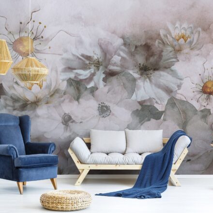 Hangulatos virágos fotótapéta, melynek szürke árnyalata sejtelmes külsőt kölcsönöz.