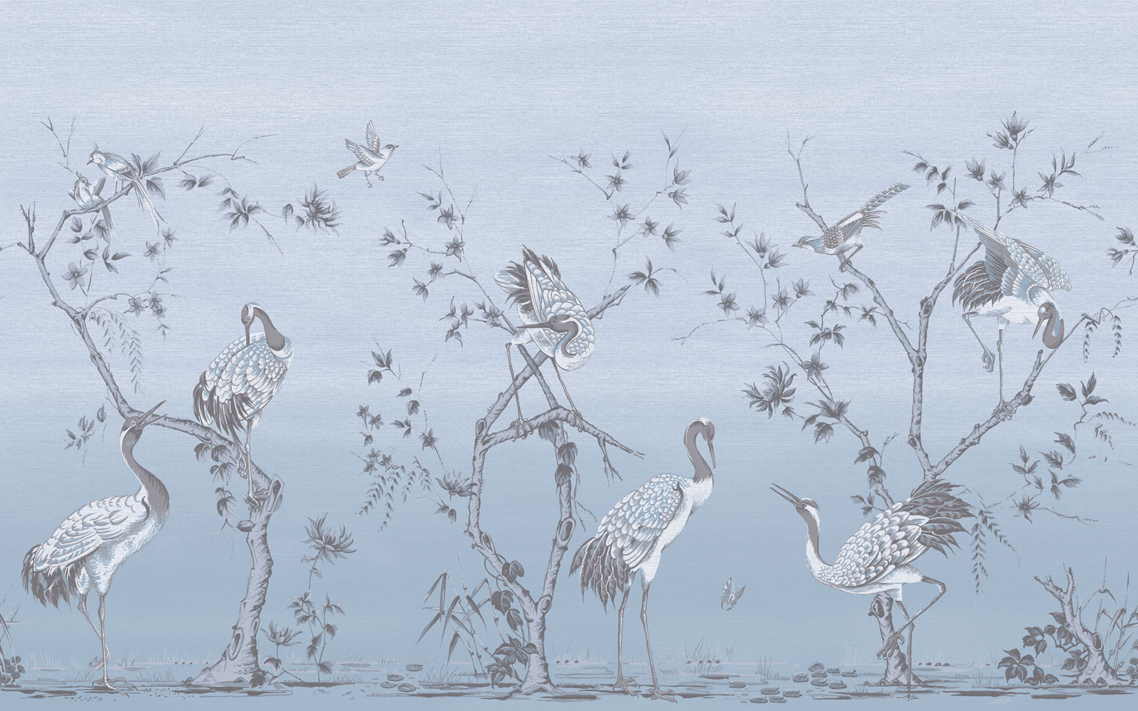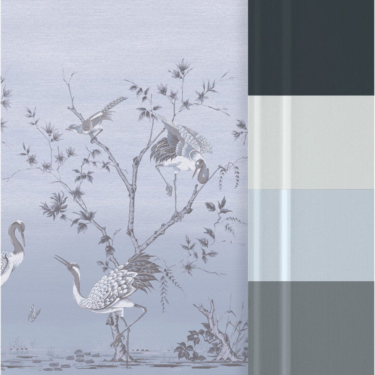 Szürkés kék darumadaras fotótapéta harmonikus képet fest elénk. Az orientális stílus jegyeit hordozó fotótapéta kecses madármintájával eleganciát és stílust hozz otthonodba.