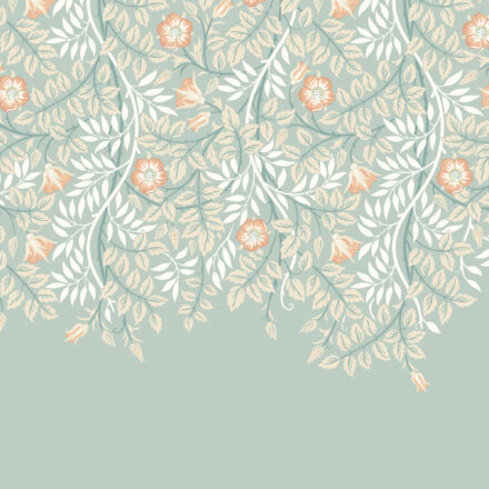Szürkés kék romantikus fotótapéta leomló virágokkal, mely tökéletes dekoráció ágy vagy kanapé mögötti falra, hogy egyedi atmoszférát teremtsünk otthonunkban.