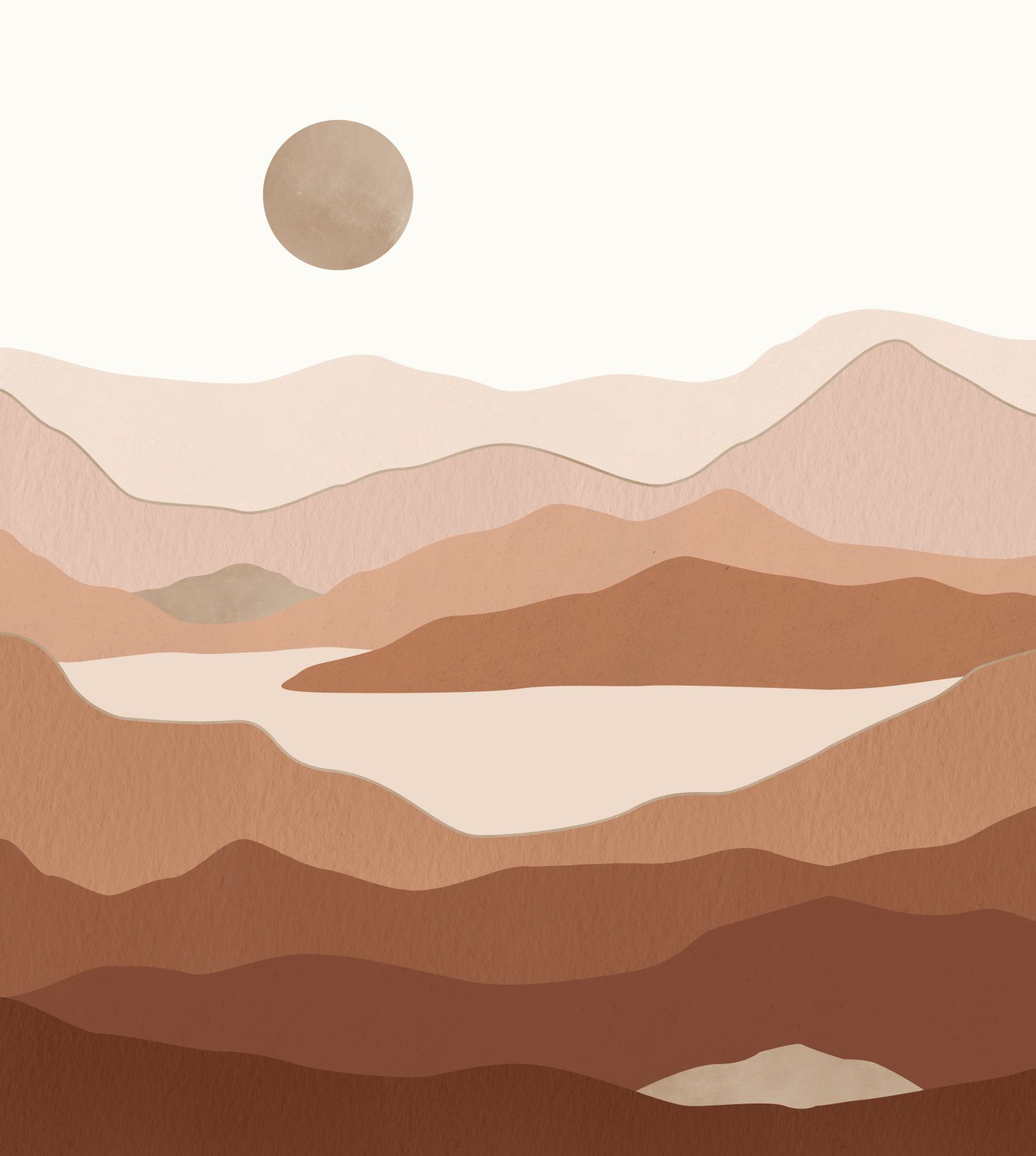 Terrakotta hegyvidéket ábrázoló tájkép fotótapéta, mely a modern otthonok hangulatos tapétája. Letisztult, modern látványt nyújt, mely látványos dekorációt teremt.