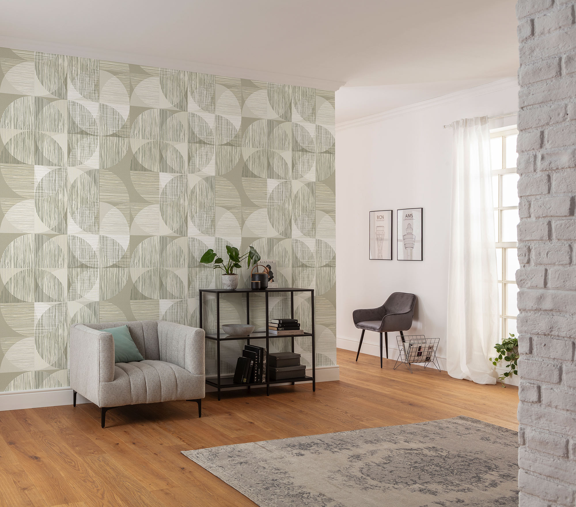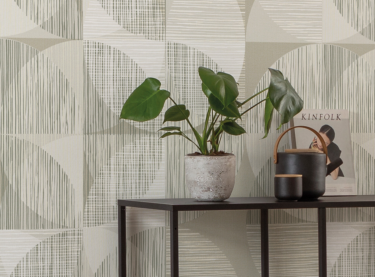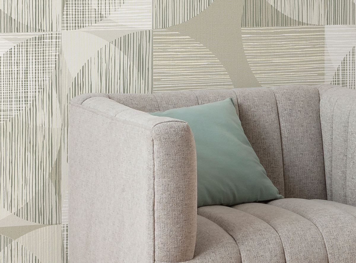 Modern, trendi fotótapéta, melynek harmonikus színvilága tökéletes összhangban van a geometriai formákból felépülő modern mintázatnak.