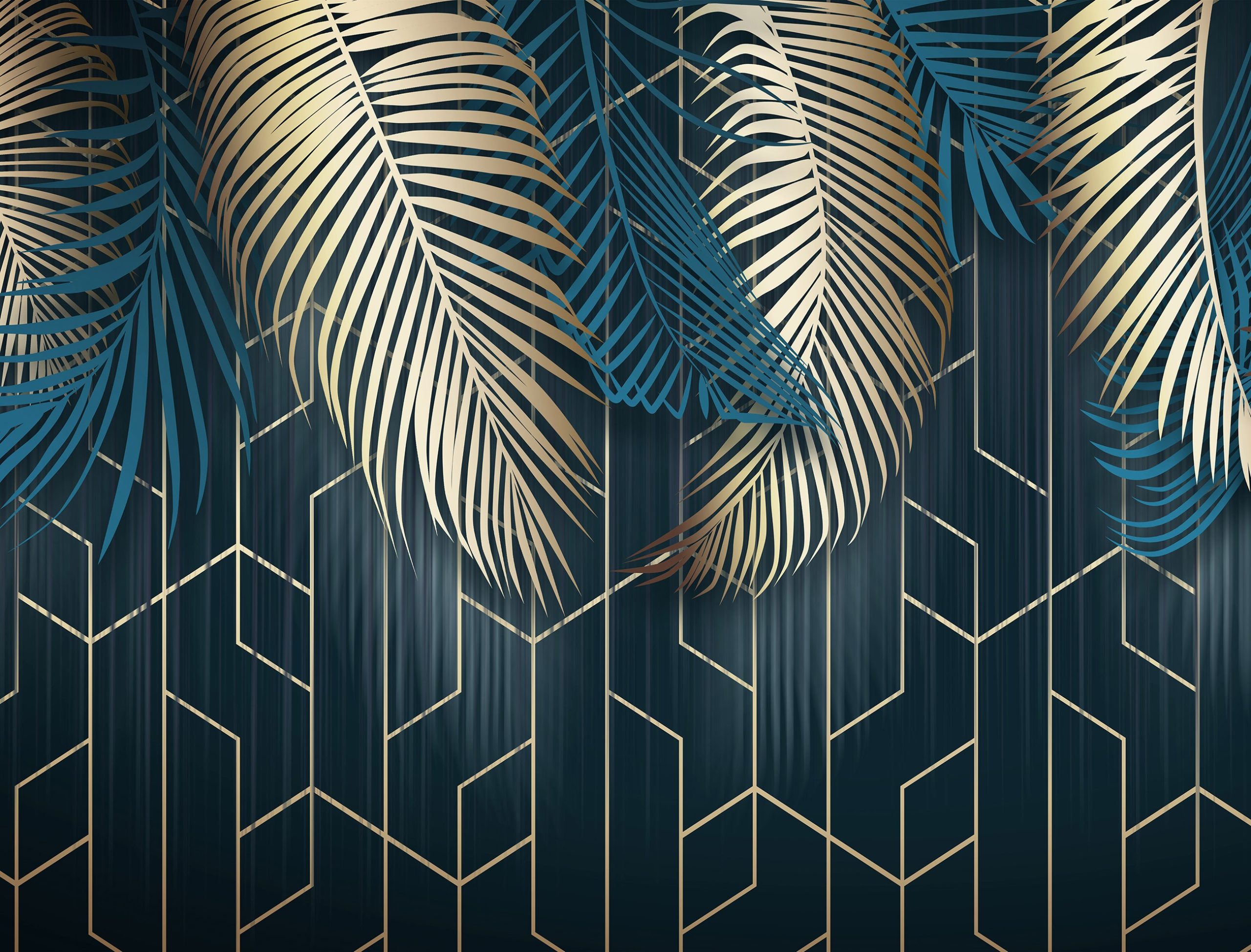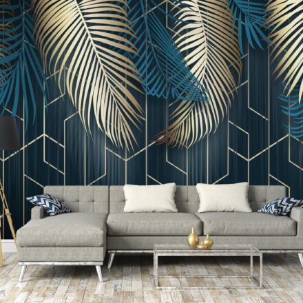 A modern fotótapéták jellegzetes mintája a geometriai és természetes levelek mintázatának kombinációja.