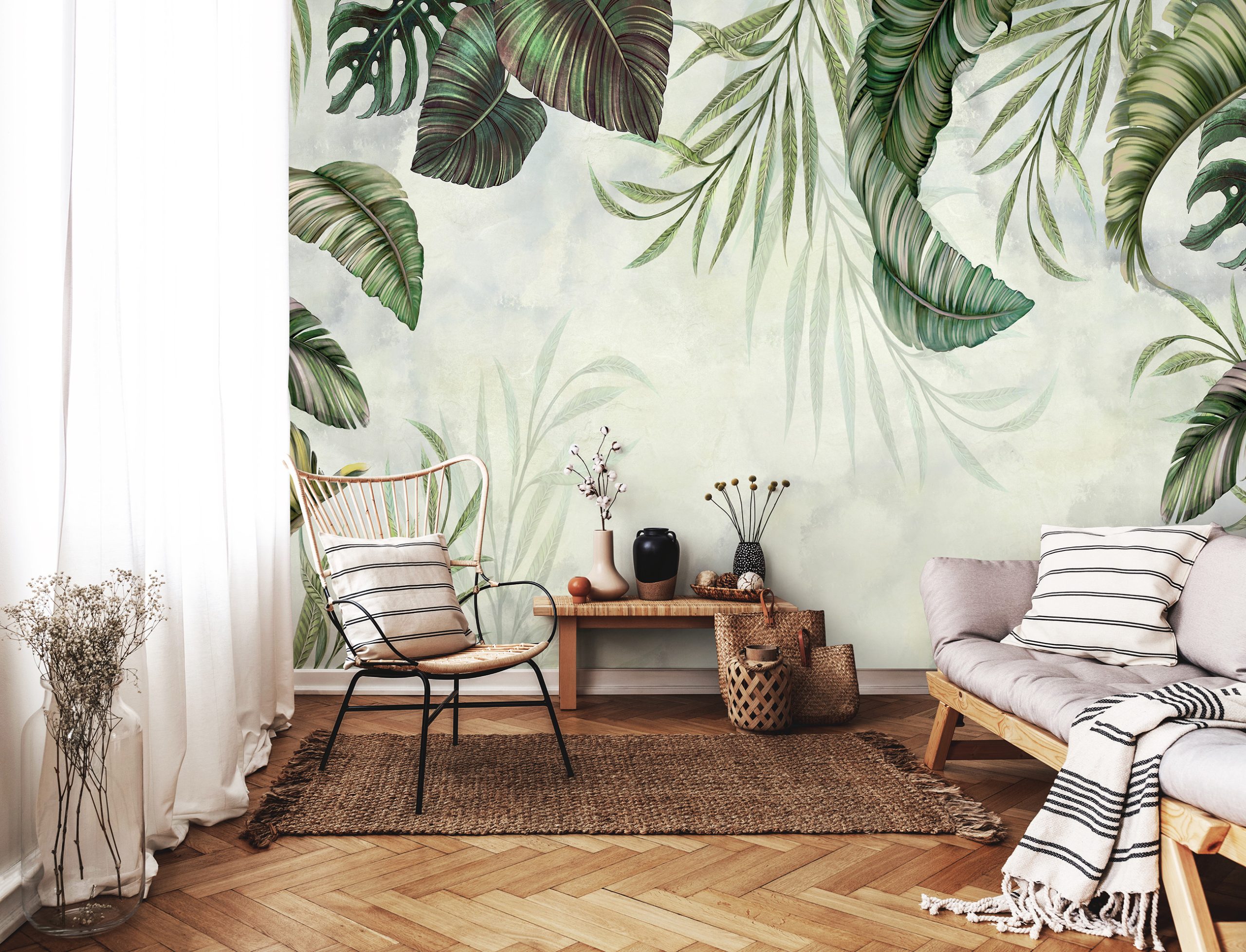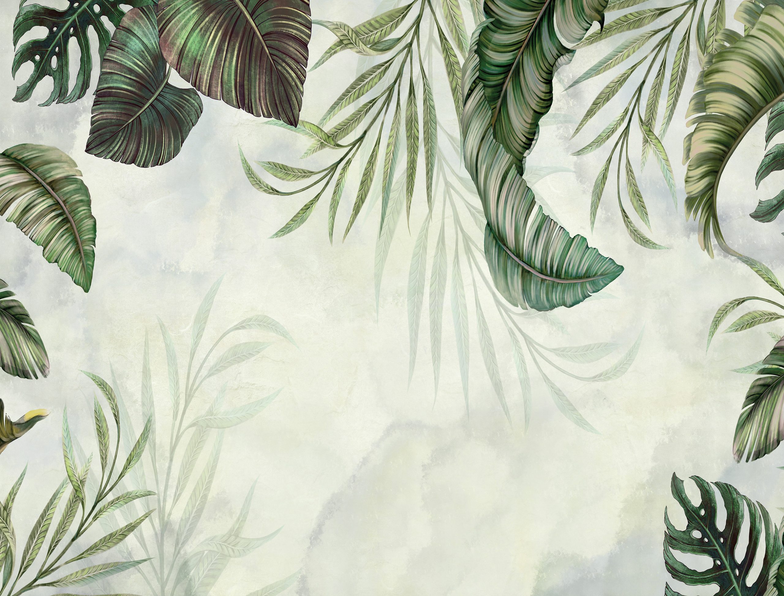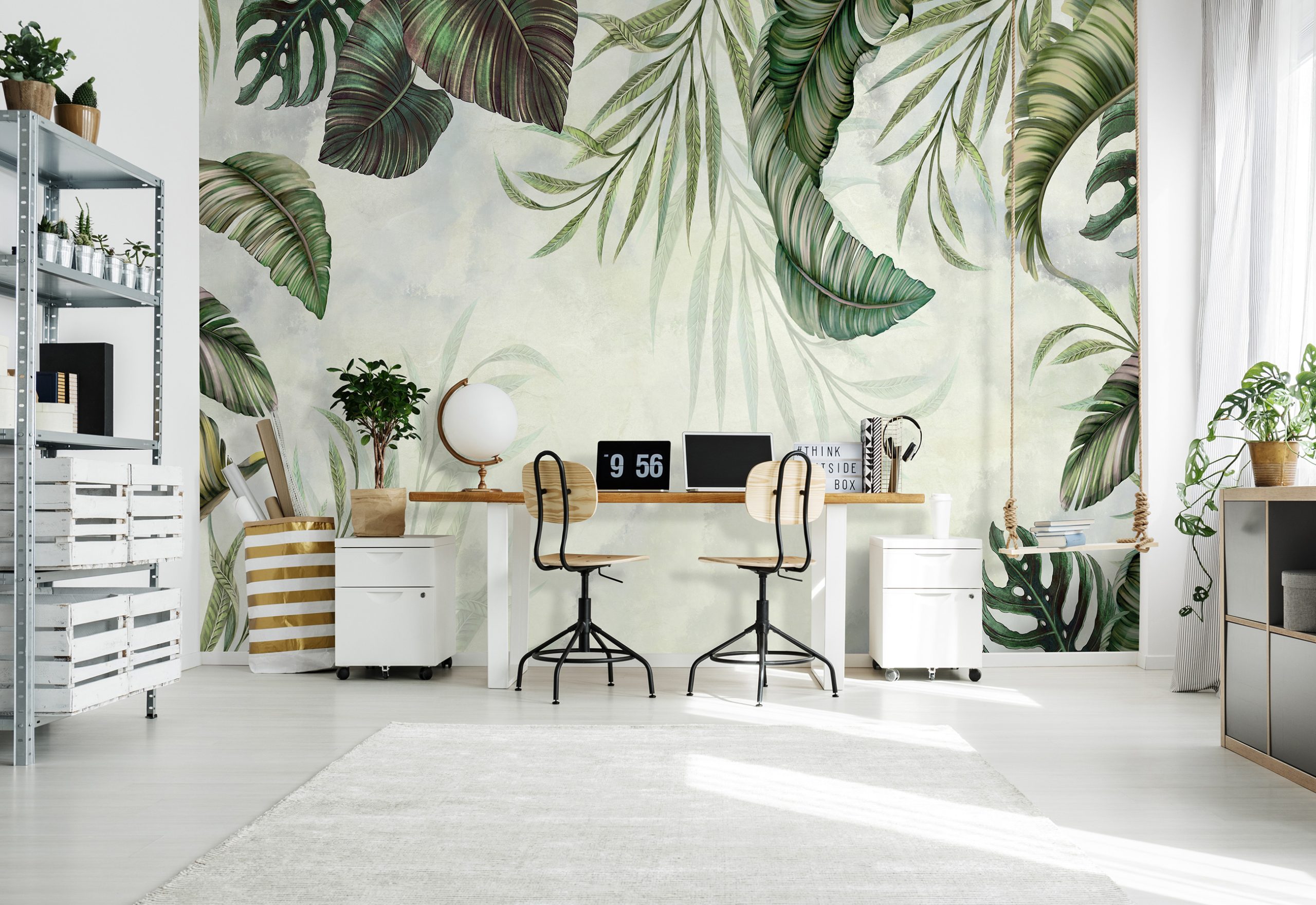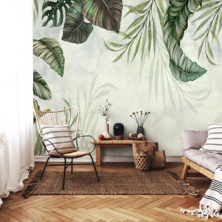 Trendi fotótapéta, melyen a lelógó levélmintája tökéletes választás ágy vagy kanapé mögötti falszakasz dekorálására.