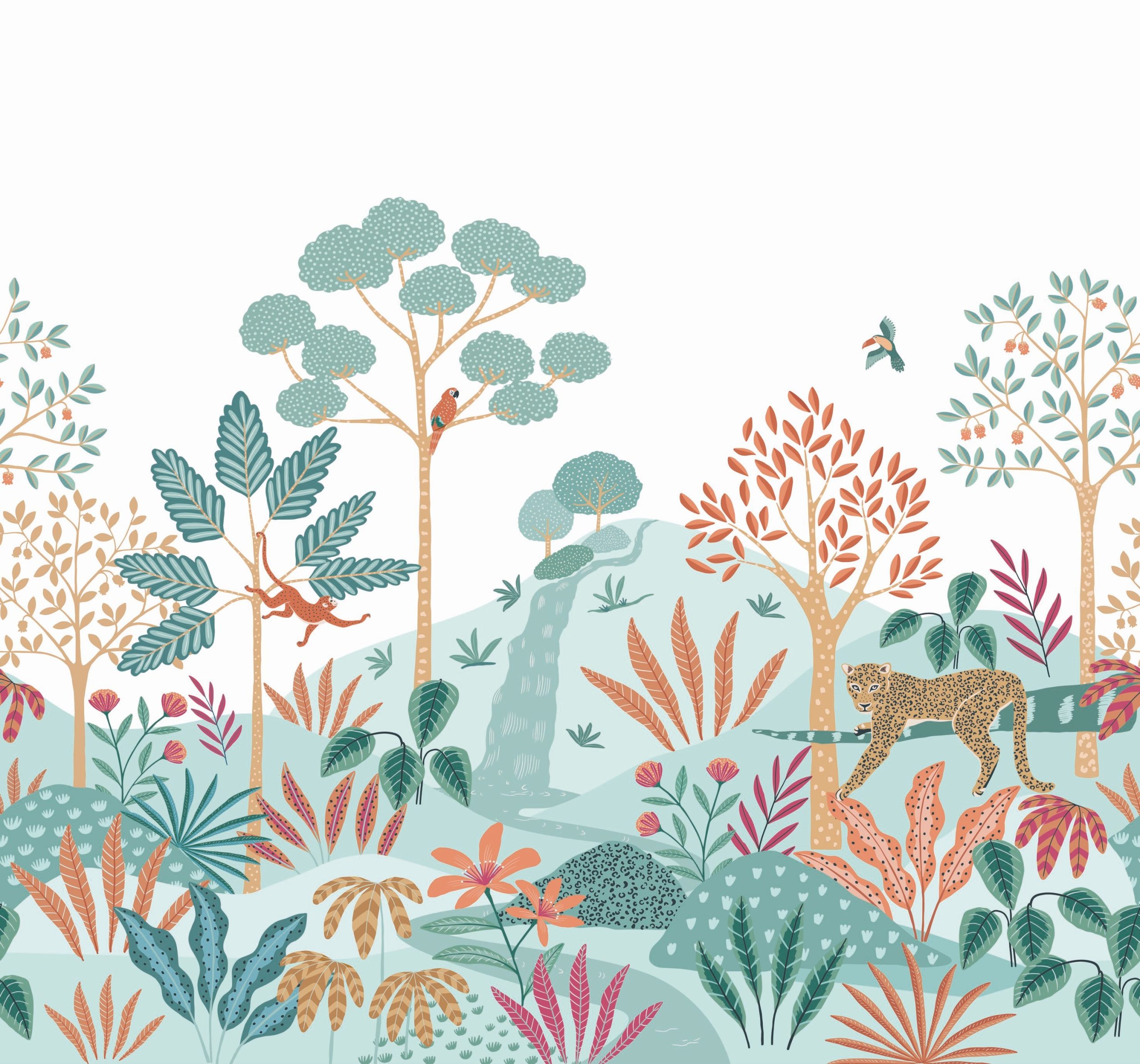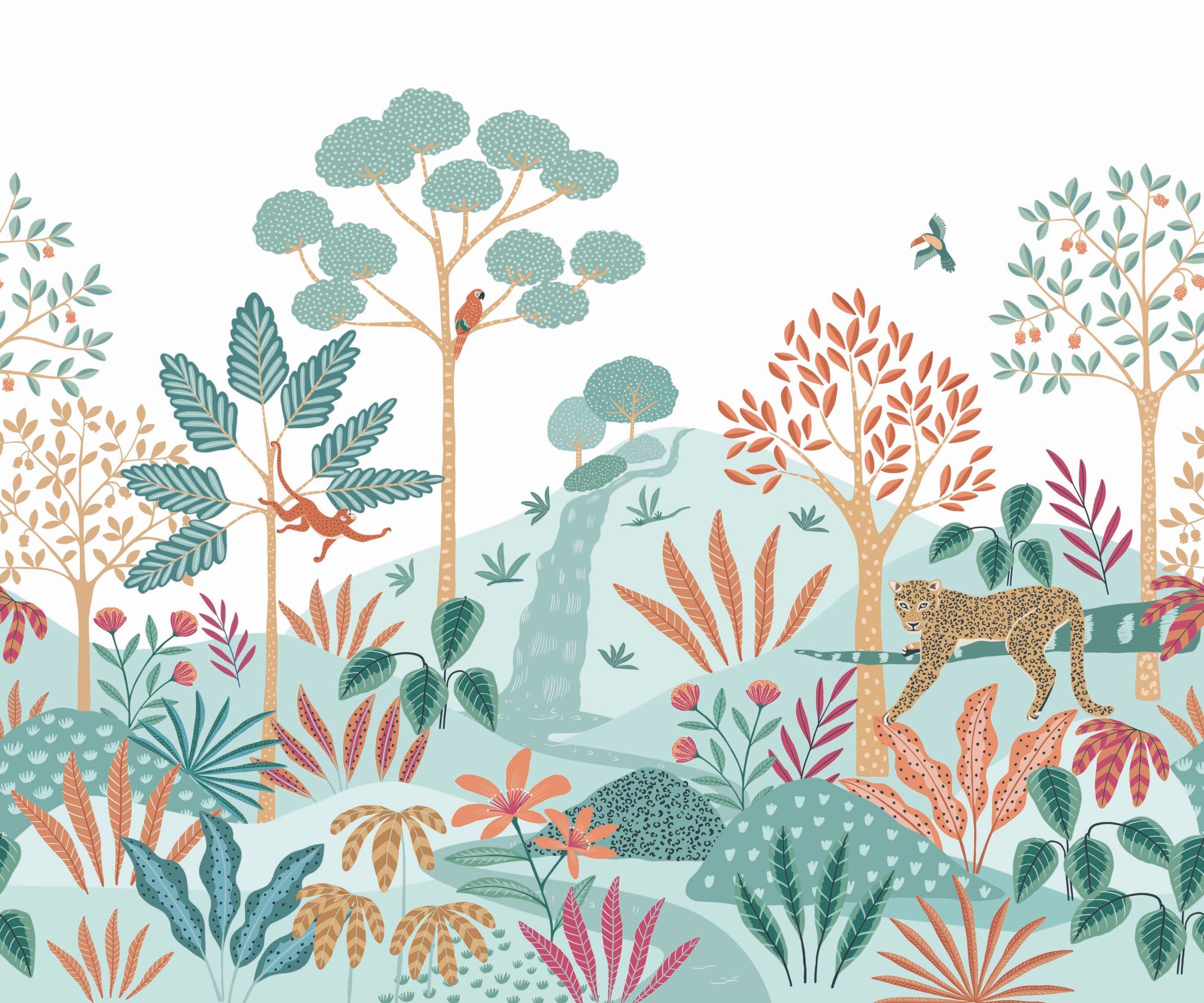Hangulatos hátteret teremthetsz a gyerekszobában a fotótapétával, melynek rajzolt formája közel áll a gyermeki világhoz. A tapéta egzotikumát a pálmafák mellett a játékos majom és a fenséges gepárd biztosítja.