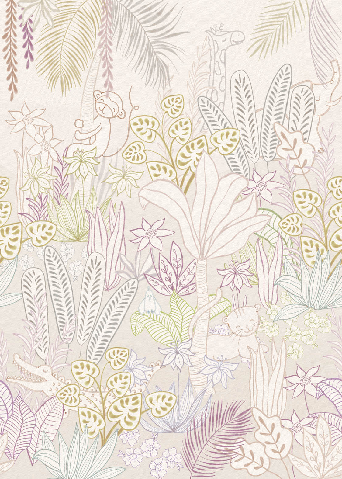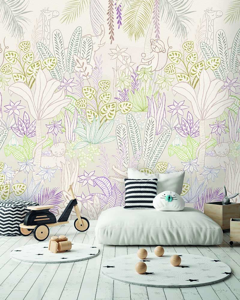 Induljunk közös kalandra gyermekünkkel a dzsungelbe! A fali poszteren megjelenő minta gyermeki rajzhoz hasonlít, mely megkönnyíti számukra az azonosulást az egyes karakterekkel.