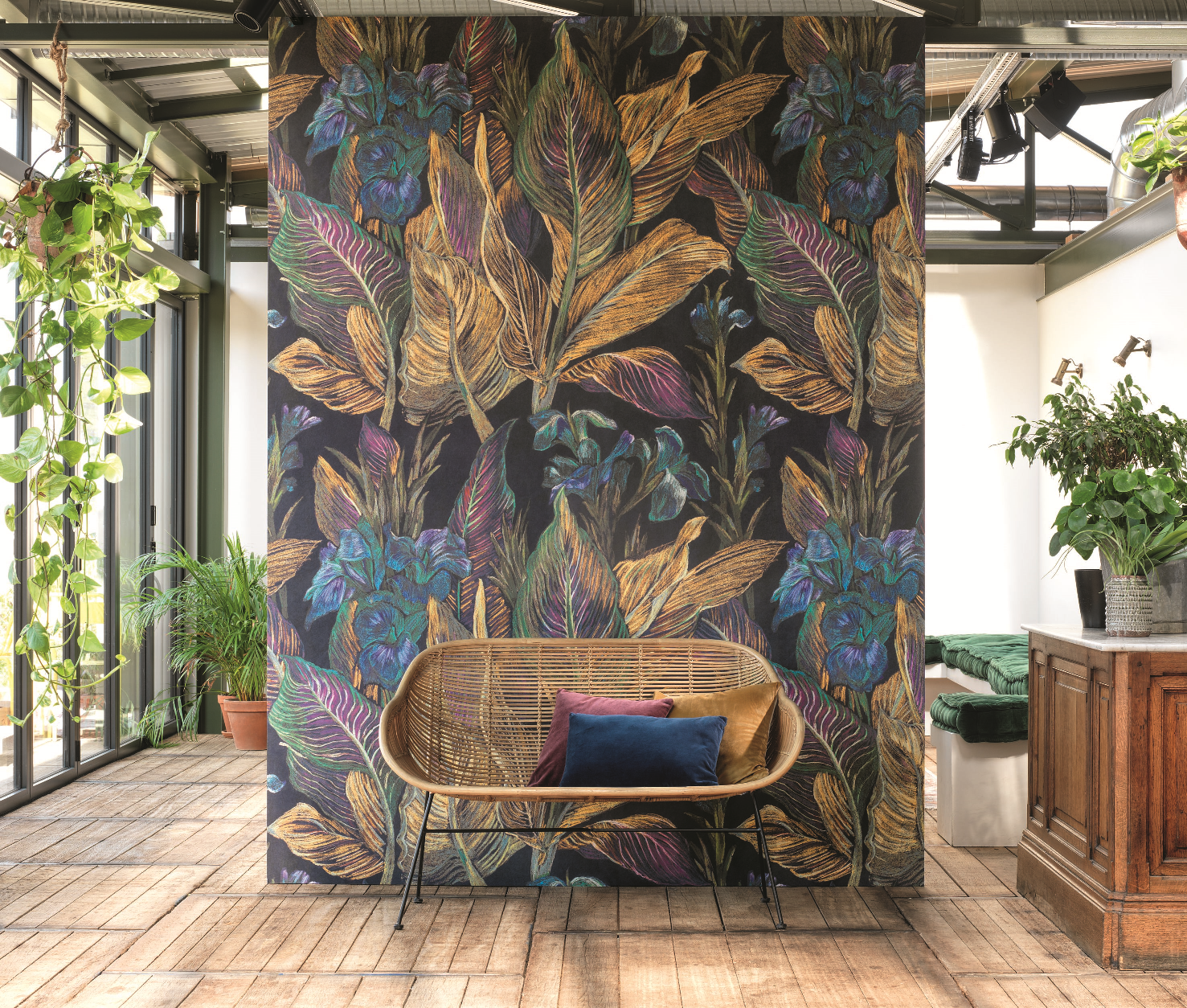 Romantikus, virágos fali poszter, melynek egzotikus színei magával ragadó látványt nyújt. A sötét alapból kiemelkedő élénk színű íriszek drámai hatást keltenek.