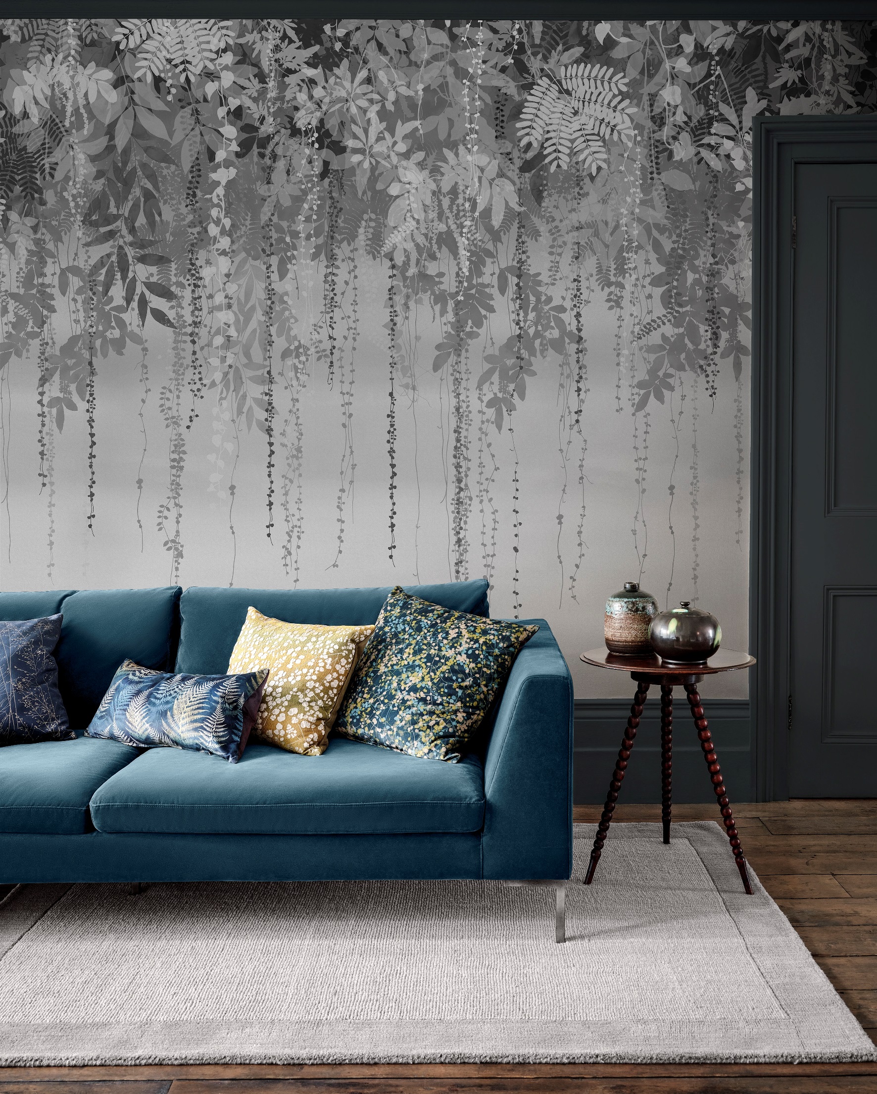 Varázslatos szépségű panel tapéta, melynek trendi lecsüngő levélmintája nőies eleganciát és kifinomult látványt teremt.