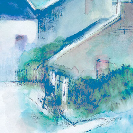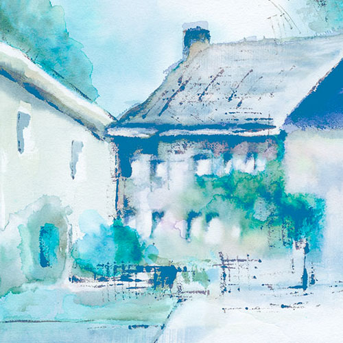 Magas hegyek között megbújó falvacskát láthatunk, mely a nyugodt élet és harmónia mintaképe. A halvány kék árnyalatban tündöklő tapéta igazán hangulatos látványt nyújt, a nyugalom óázisa jelenik meg előttünk.