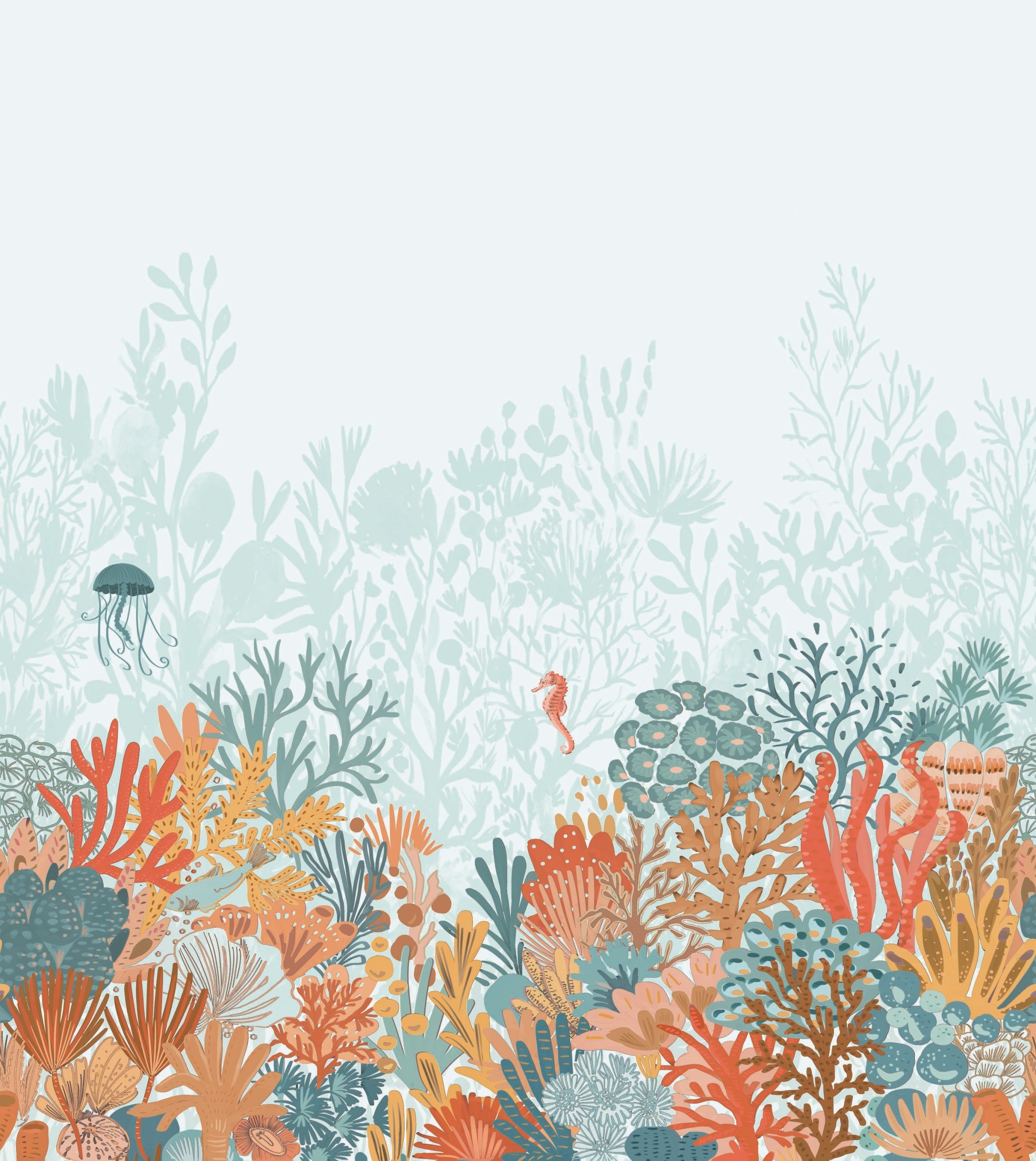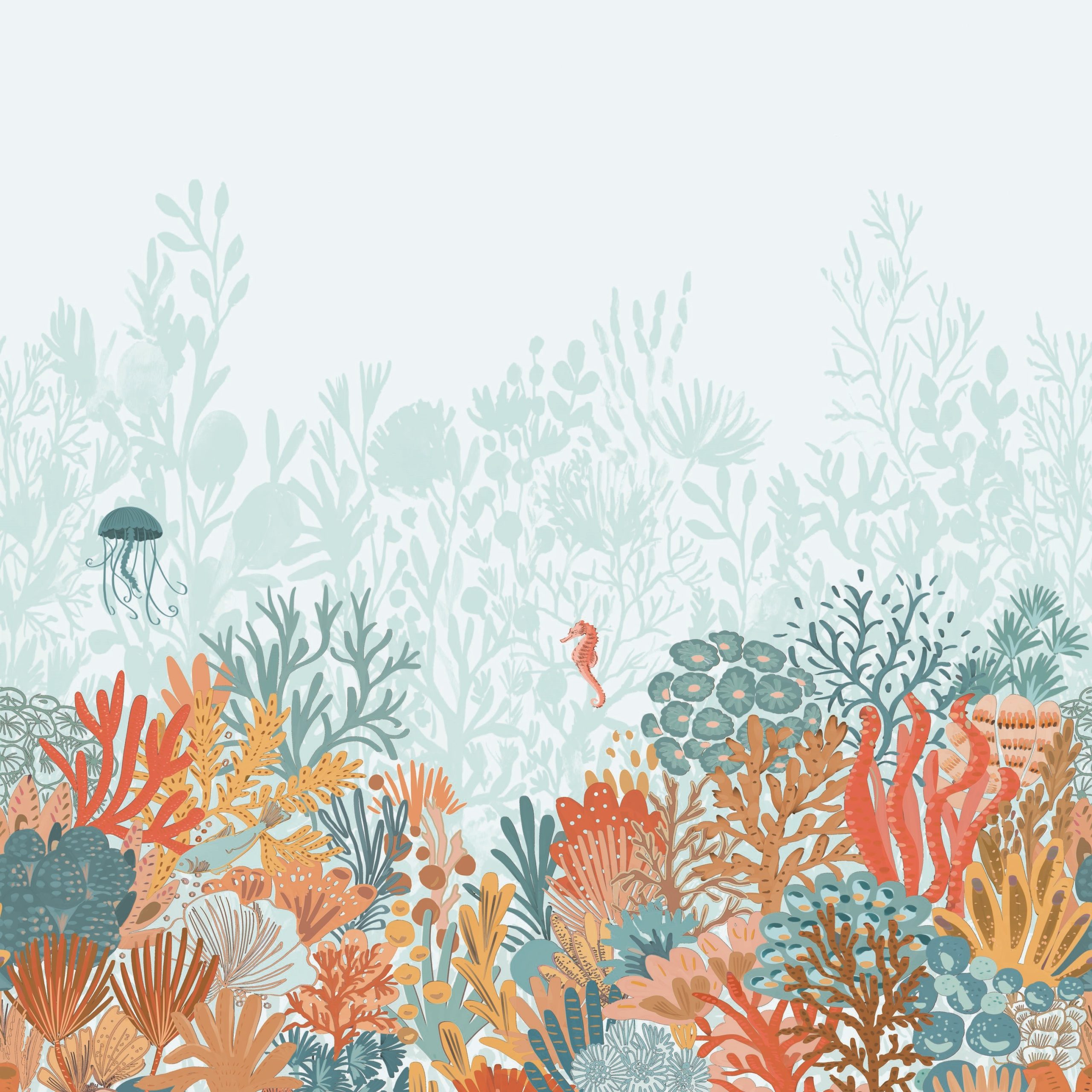 Világos kék fotótapéta színes korallokkal, mellyel vidám, játékos atmoszférát teremthetsz az enteriőrben. Szakadj ki a hétköznapok unalmából!