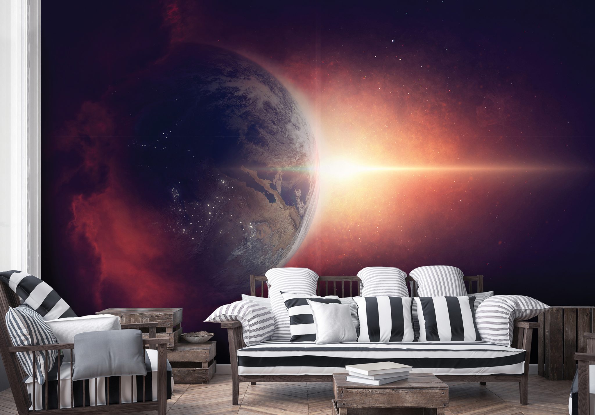 Föld bolygó az űrből, melynek trendi, látványos mintája fiatalos lendületet ad az enteriőrnek.