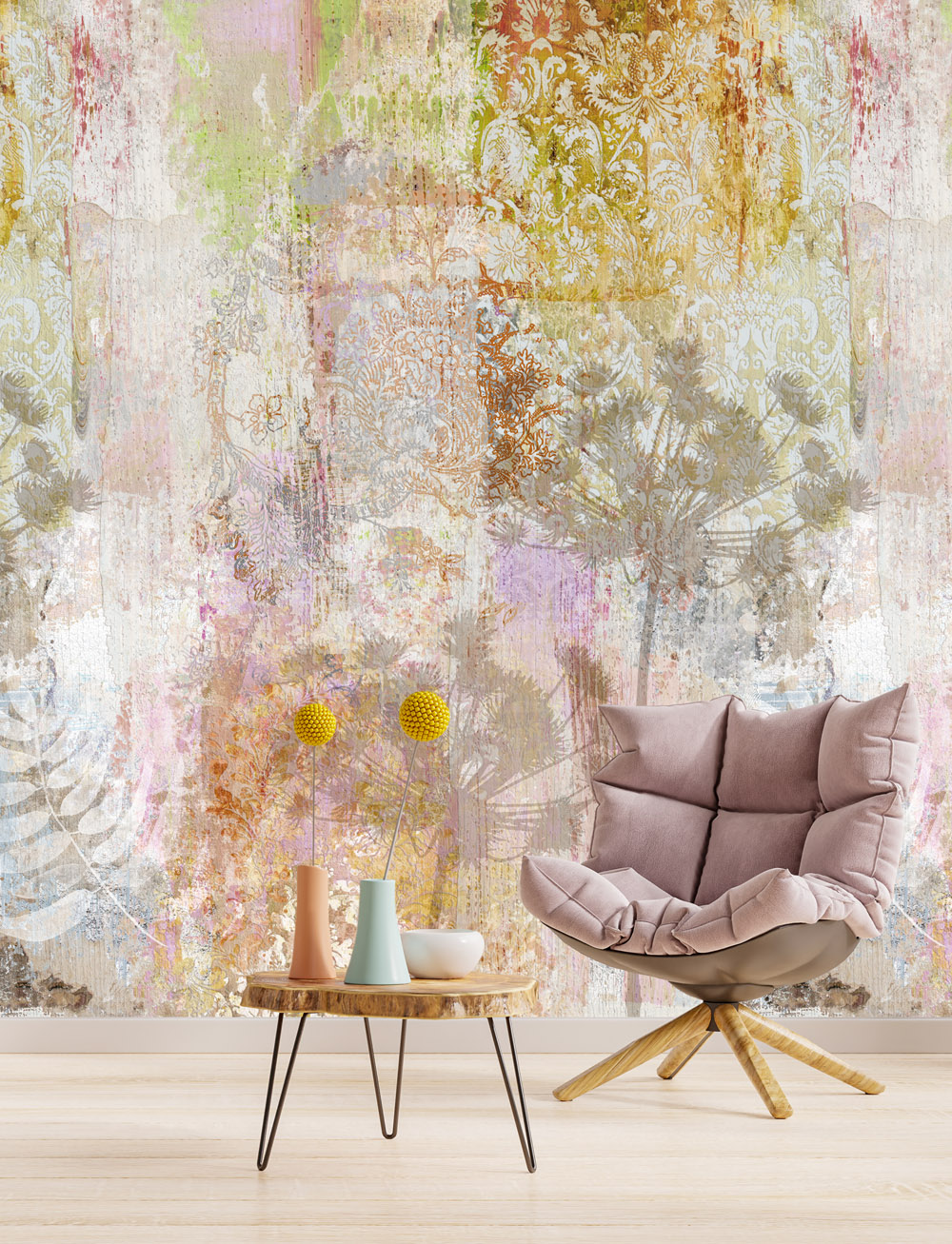 Magával ragadó fotótapéta, melynek vintage stílusú, elmosódott háttér mintáján vadvirágok rajzolódnak ki. A fotótapéta sajátossága, hogy egymás mellé sorolható, így a minta illesztődik, és nagy felület tapétázására is alkalmas.
