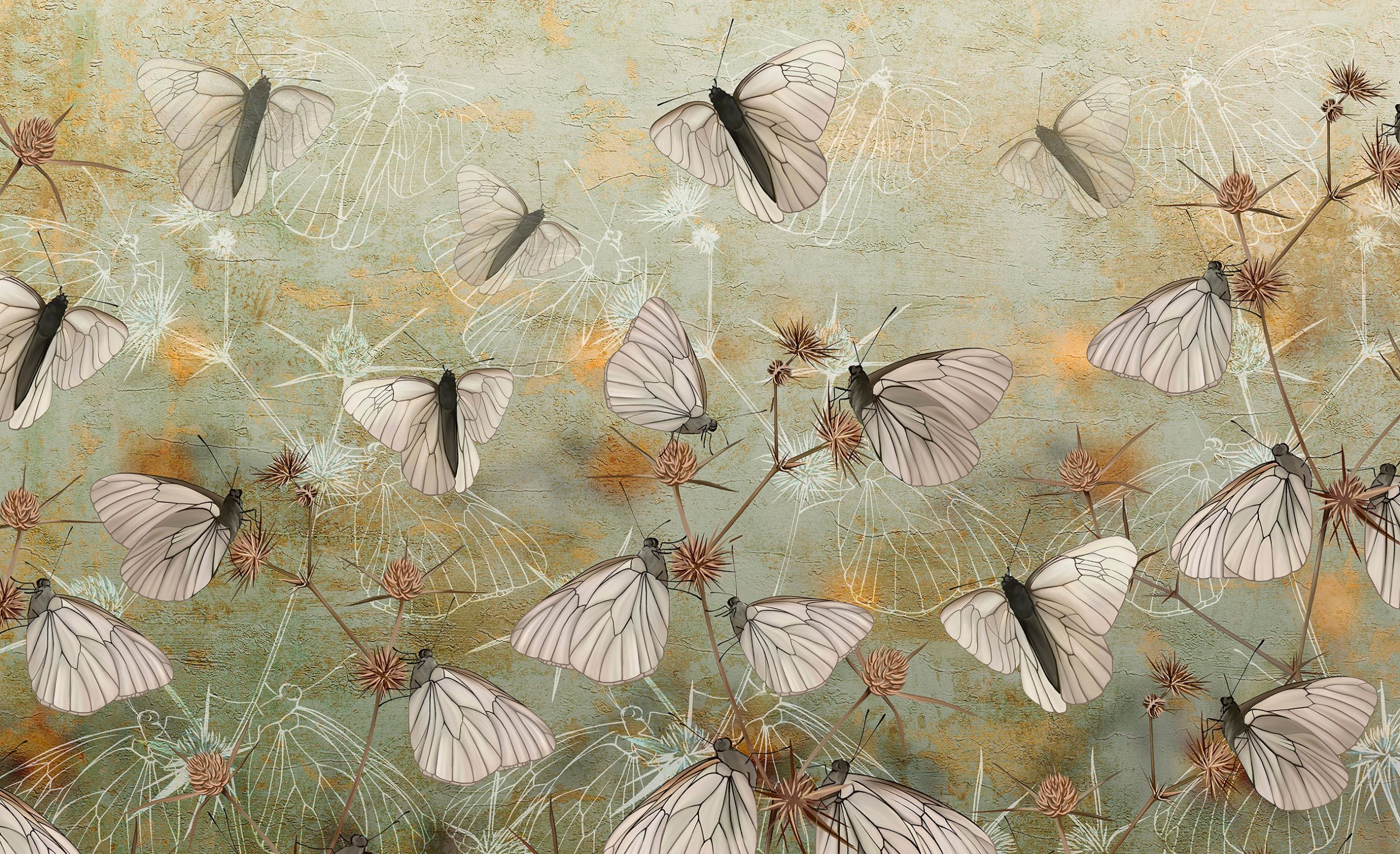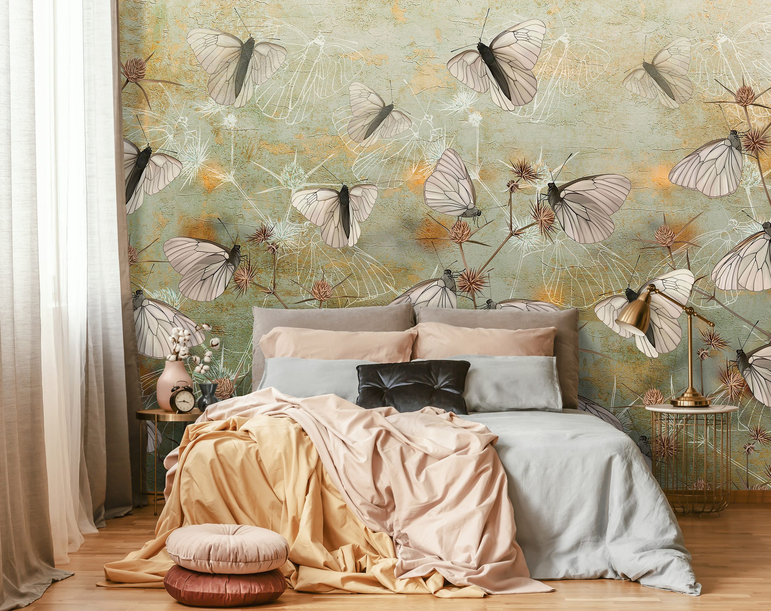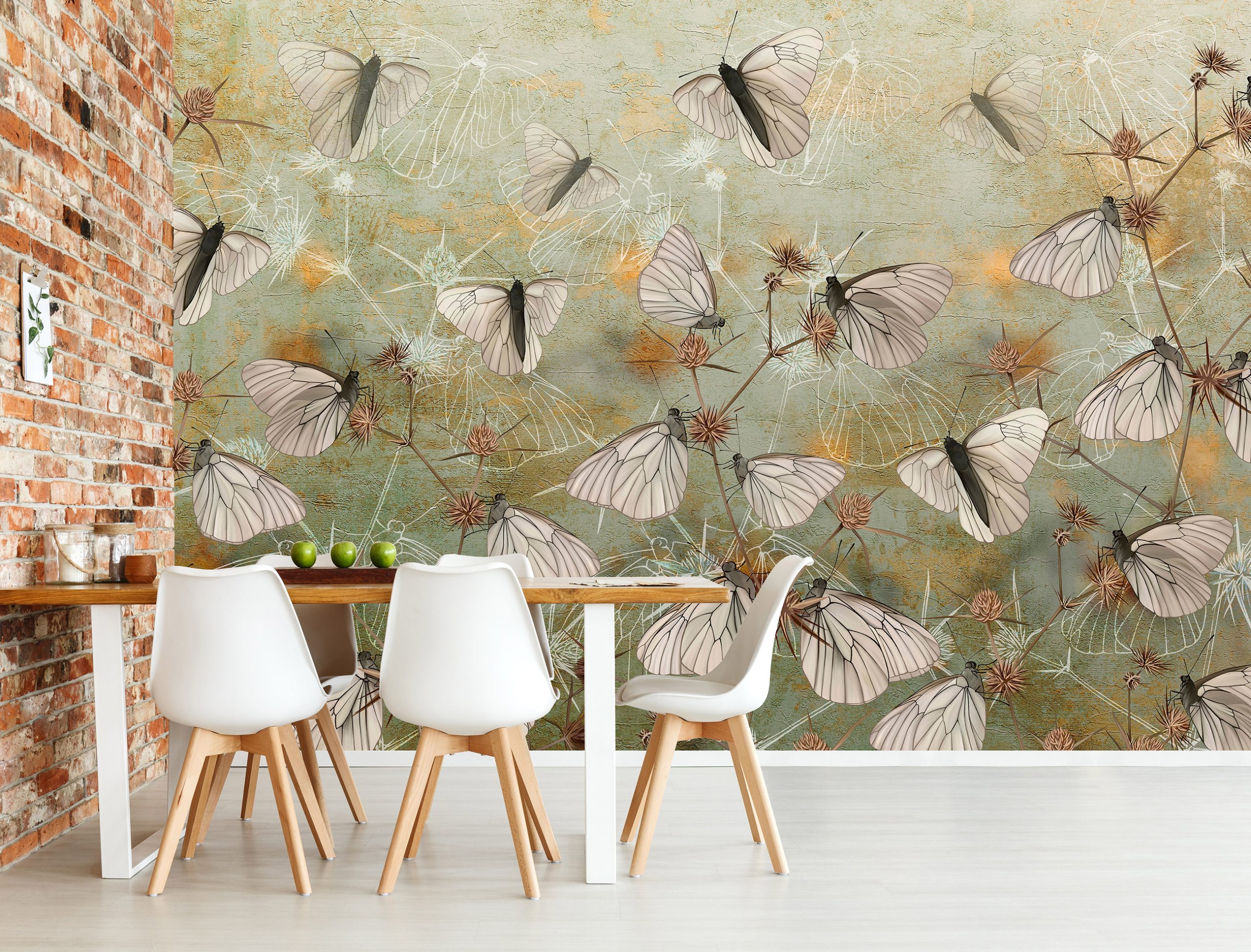 Különleges, egyedi fotótapéta, melynek lepkés mintája átformálja az enteriőr hangulatát.