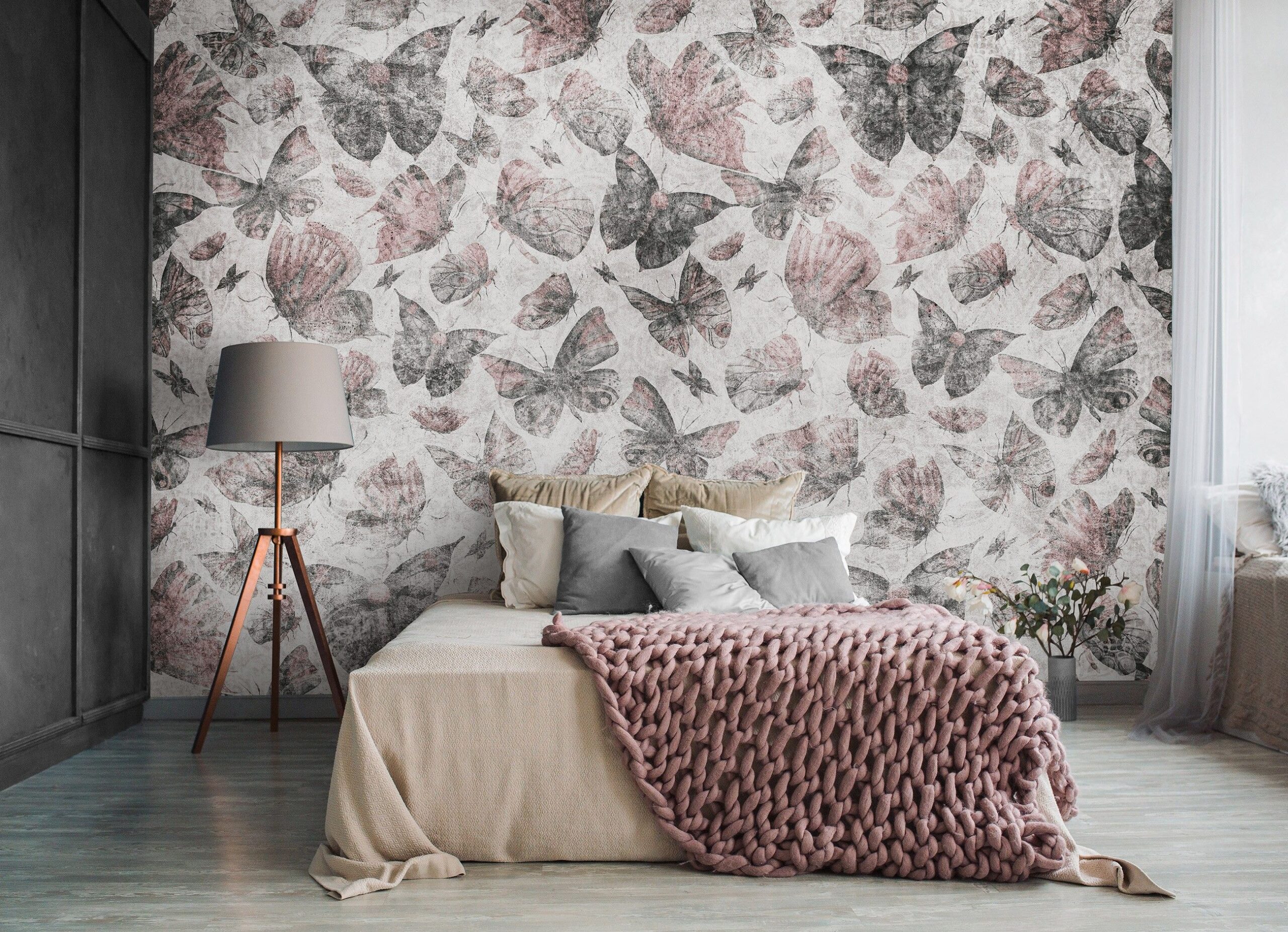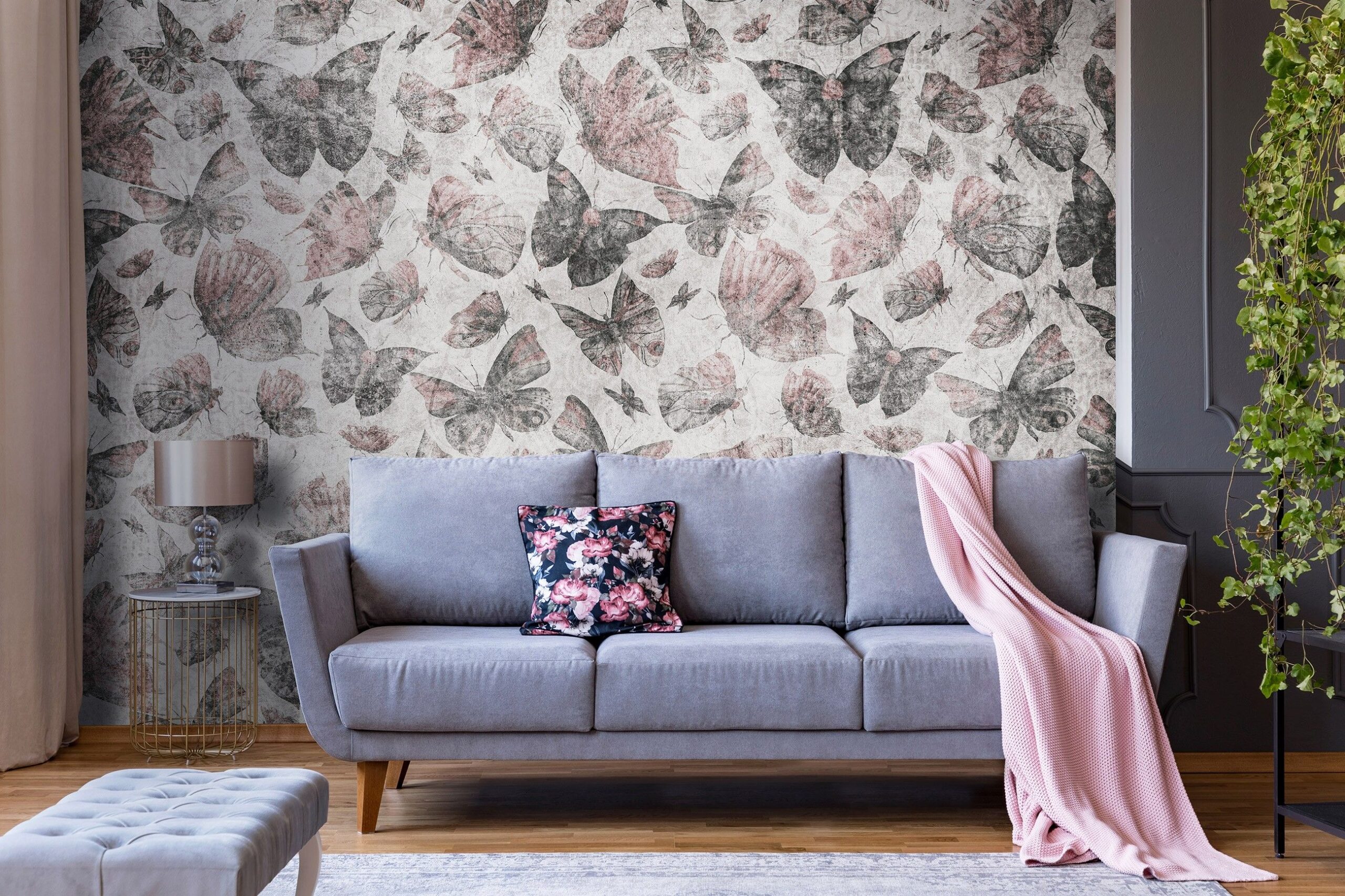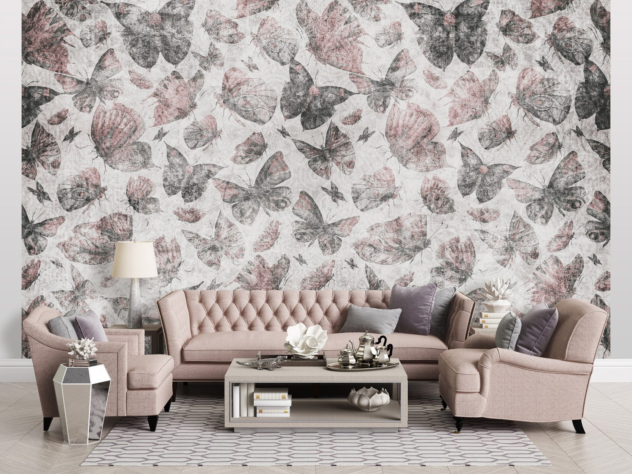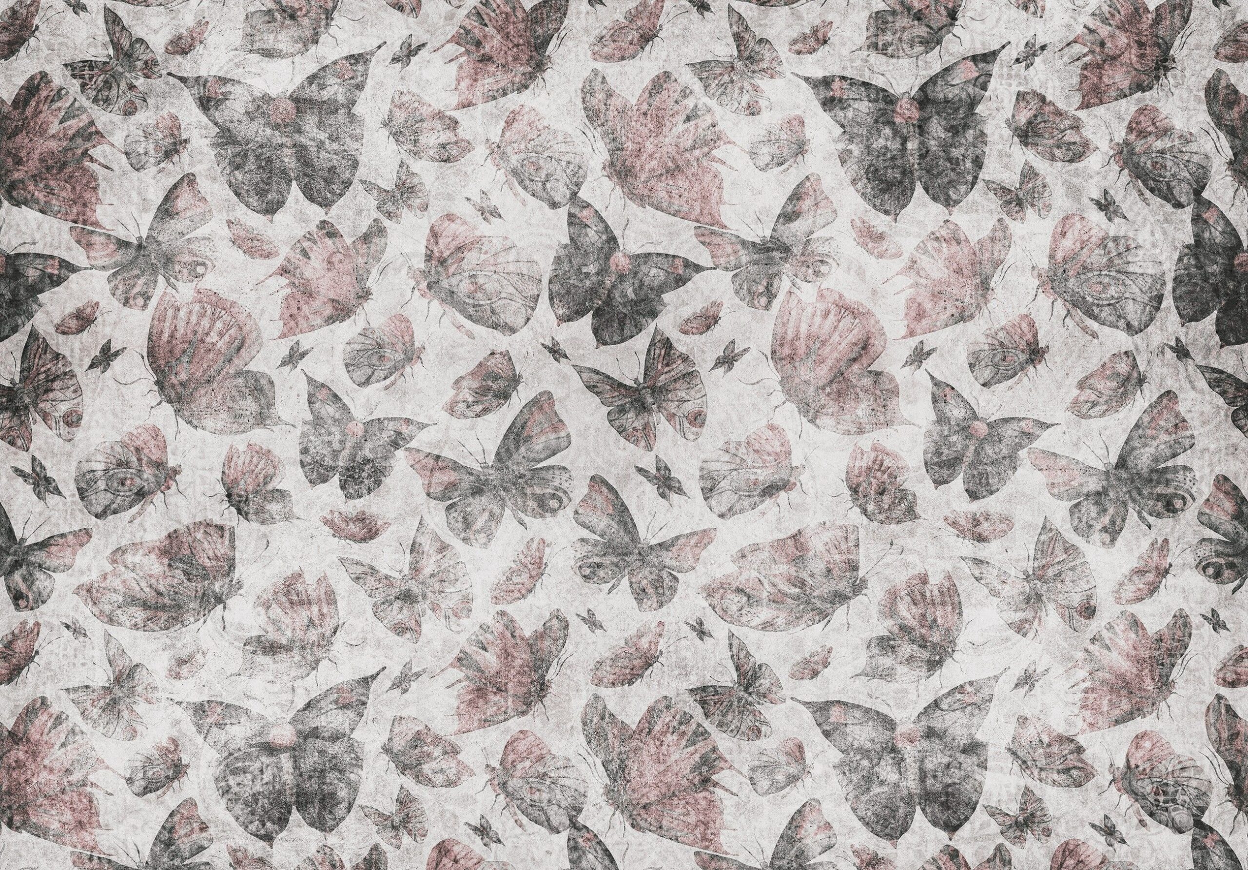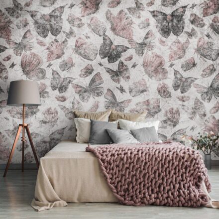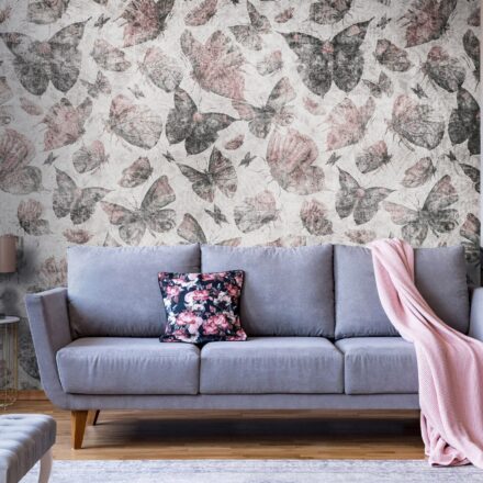 Vintage stílusú fotótapéta rózsaszín lepkékkel. Teremts egyedi atmoszférát otthonodban ezzel a kivételes designnal!