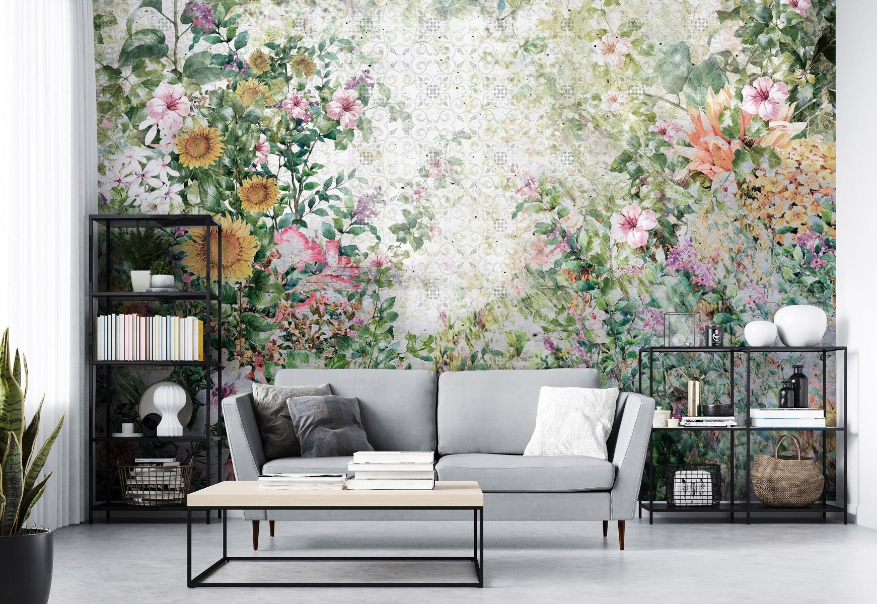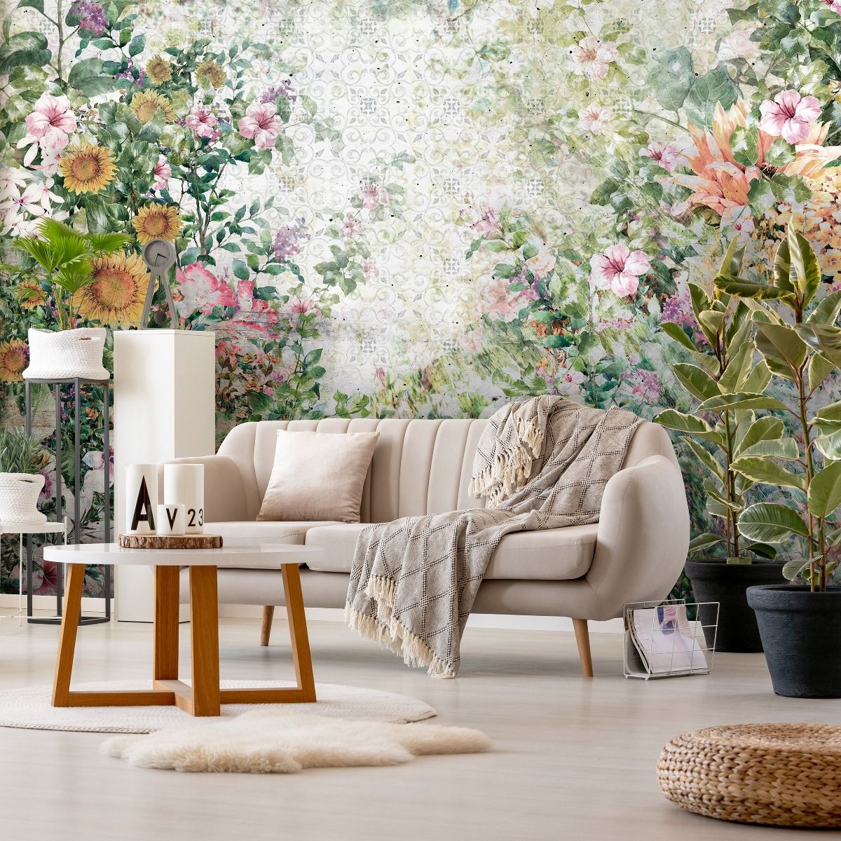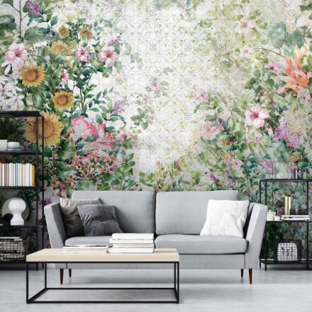 Vintage stílusú fotótapéta virágokkal, melynek üde, friss színei a tavaszt hozza el az enteriőrbe.