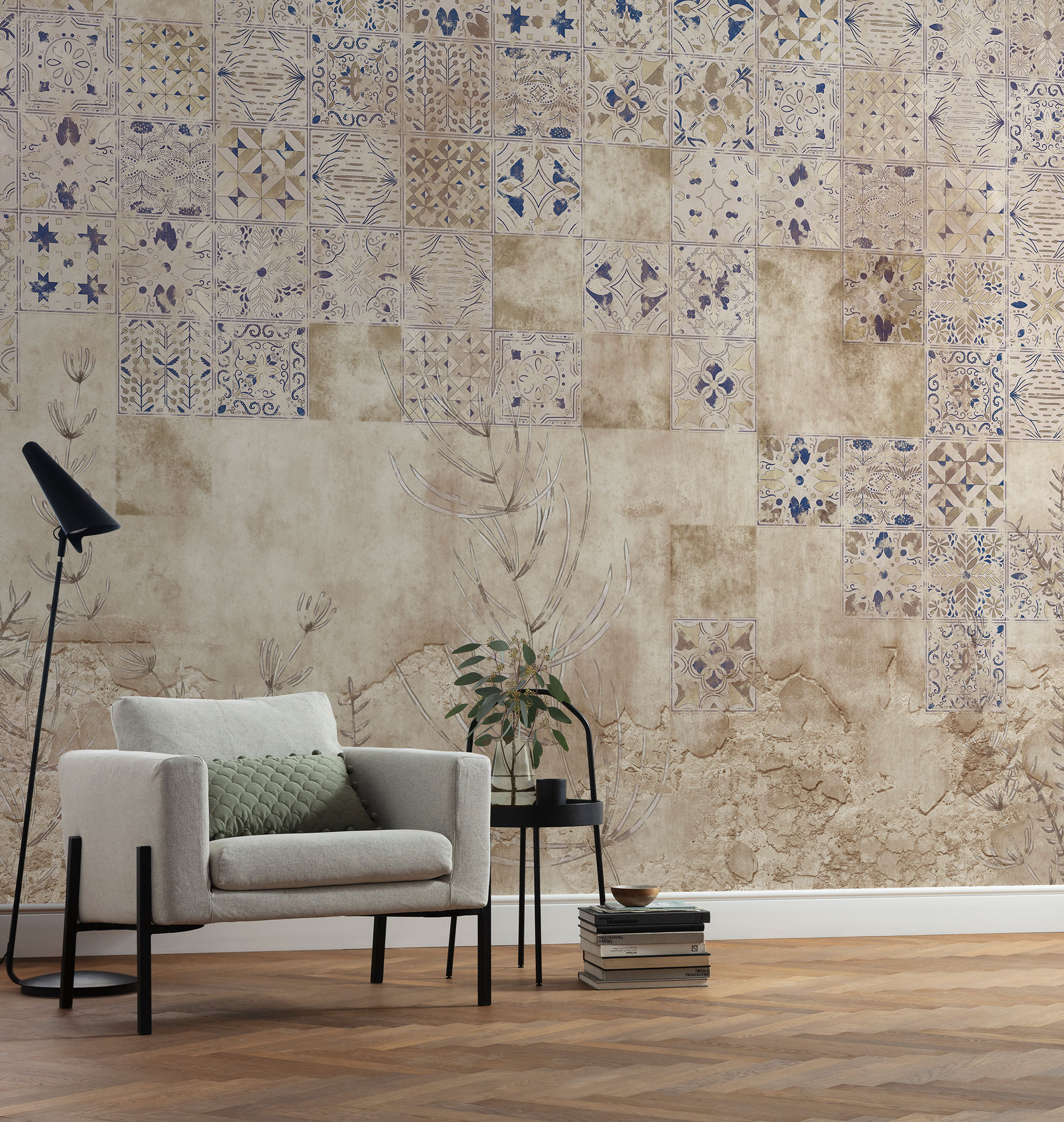 Művészien megkomponált mintájával vintage hatást kelt a falon a fotótapéta. Az organikus és marokkói mintát kombináló fotótapéta gyönyörű látványt nyújt nagyobb terekben.