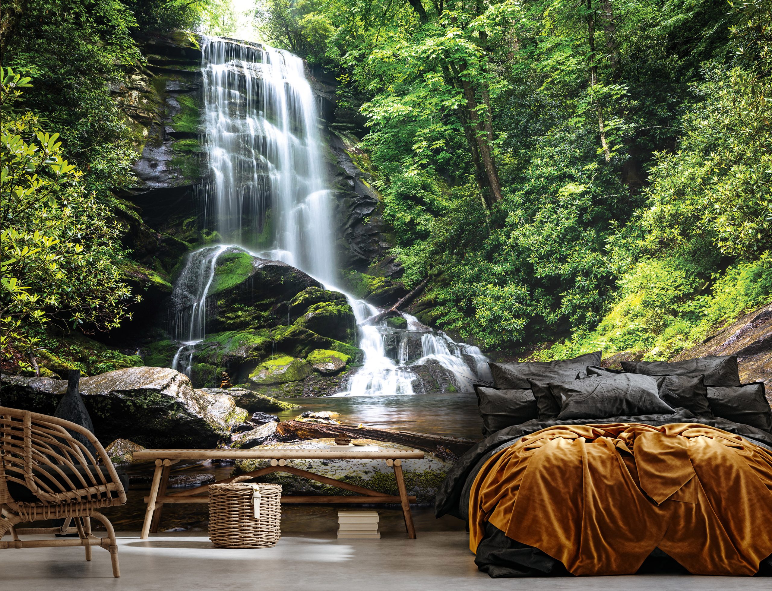 Vigyél egy csipet egzotikumot otthonod atmoszférájába a fotótapétával, melynek vízesést ábrázoló képe térnövelő hatással bír a szobában.