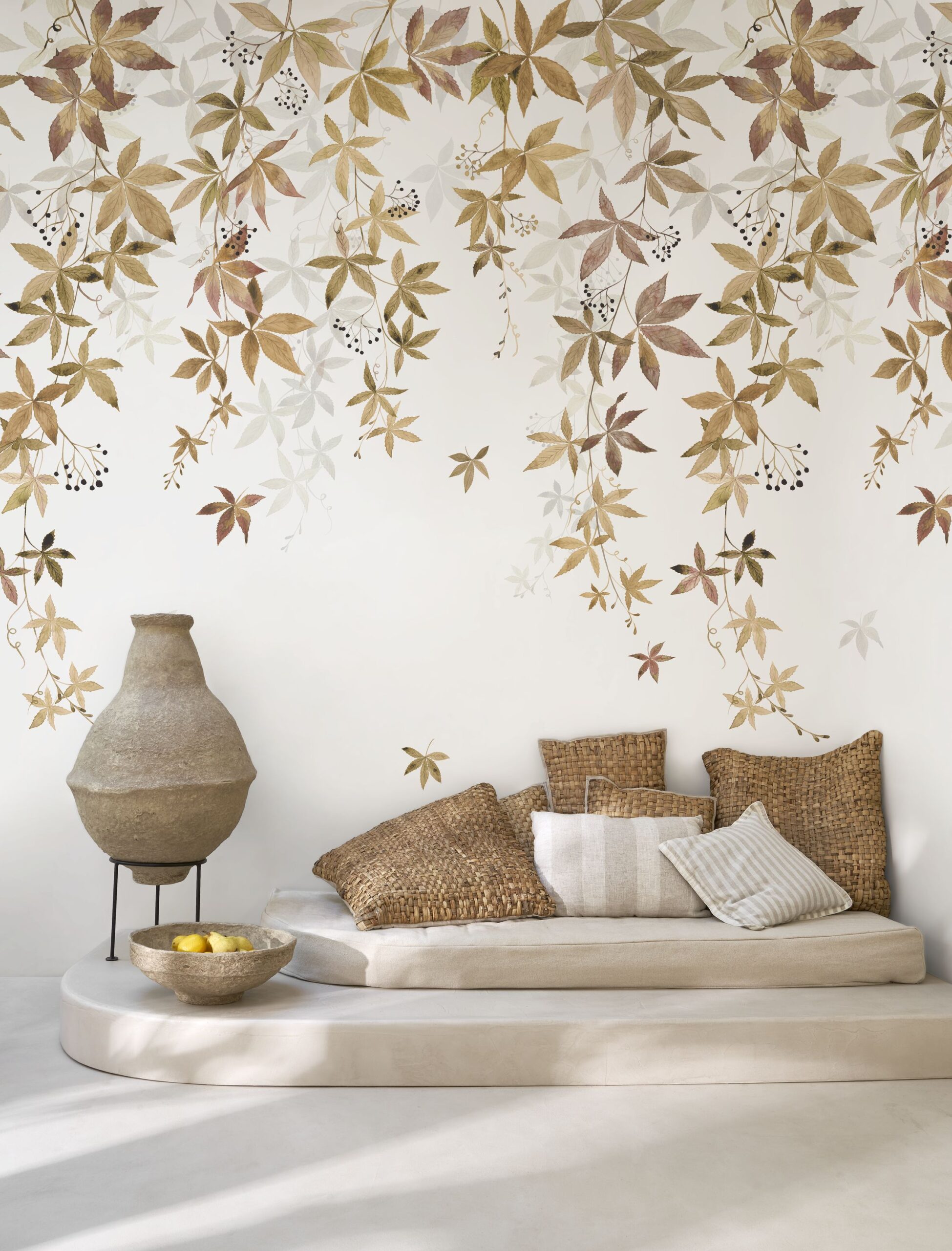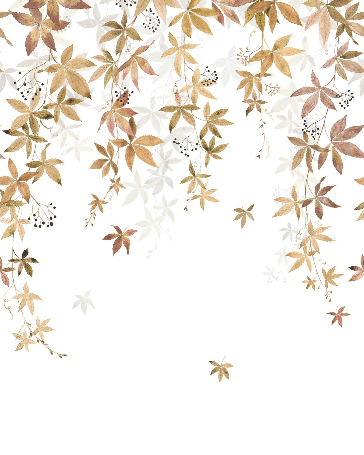 Vlies fotótapéta lehajló levélmintával barnás árnyalatban, mely a virginai kúszónövény magával ragadó látványát hozza el otthonunkba.