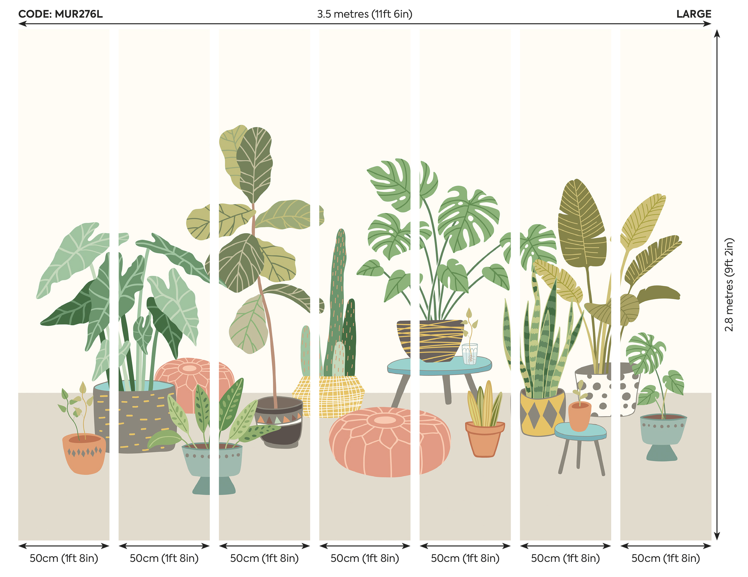 ✔ L – 350 cm széles x 280 cm magas (7 db 50 cm -es csíkból épül fel)