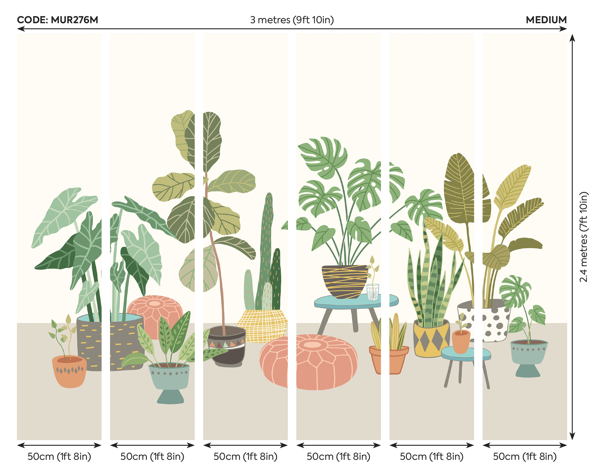 ✔ M – 300 cm széles x 240 cm magas (6 db 50 cm-es csíkból épül fel)