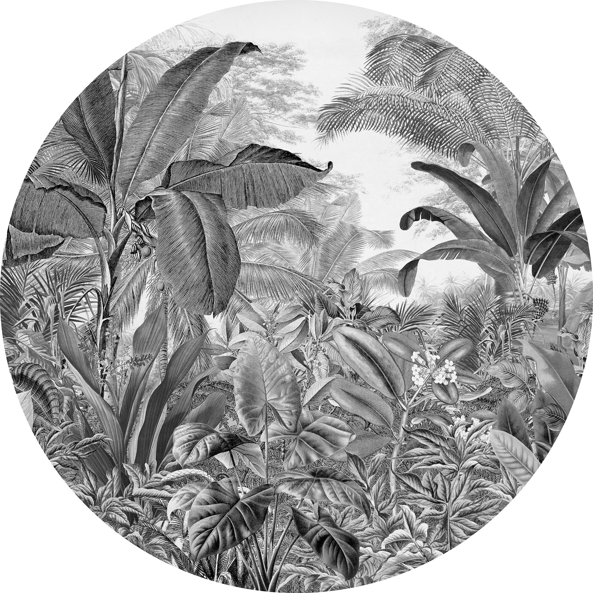 Modern fekete-fehér fotótapéta trópusi pálmafákkal. A fekete fehér grafikai formája lehetővé teszi, hogy a fotótapéta legizgalmasabb részletei is életre keljenek.