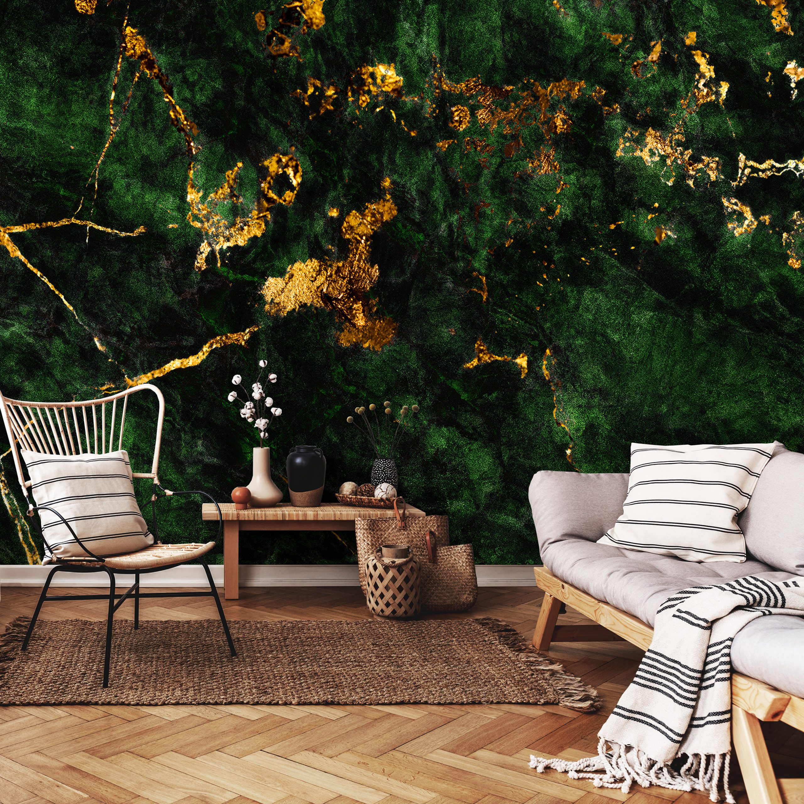 Ércfelületet imitáló fotótapéta, melynek izgalmas színei látványosan dekorálják a falat.