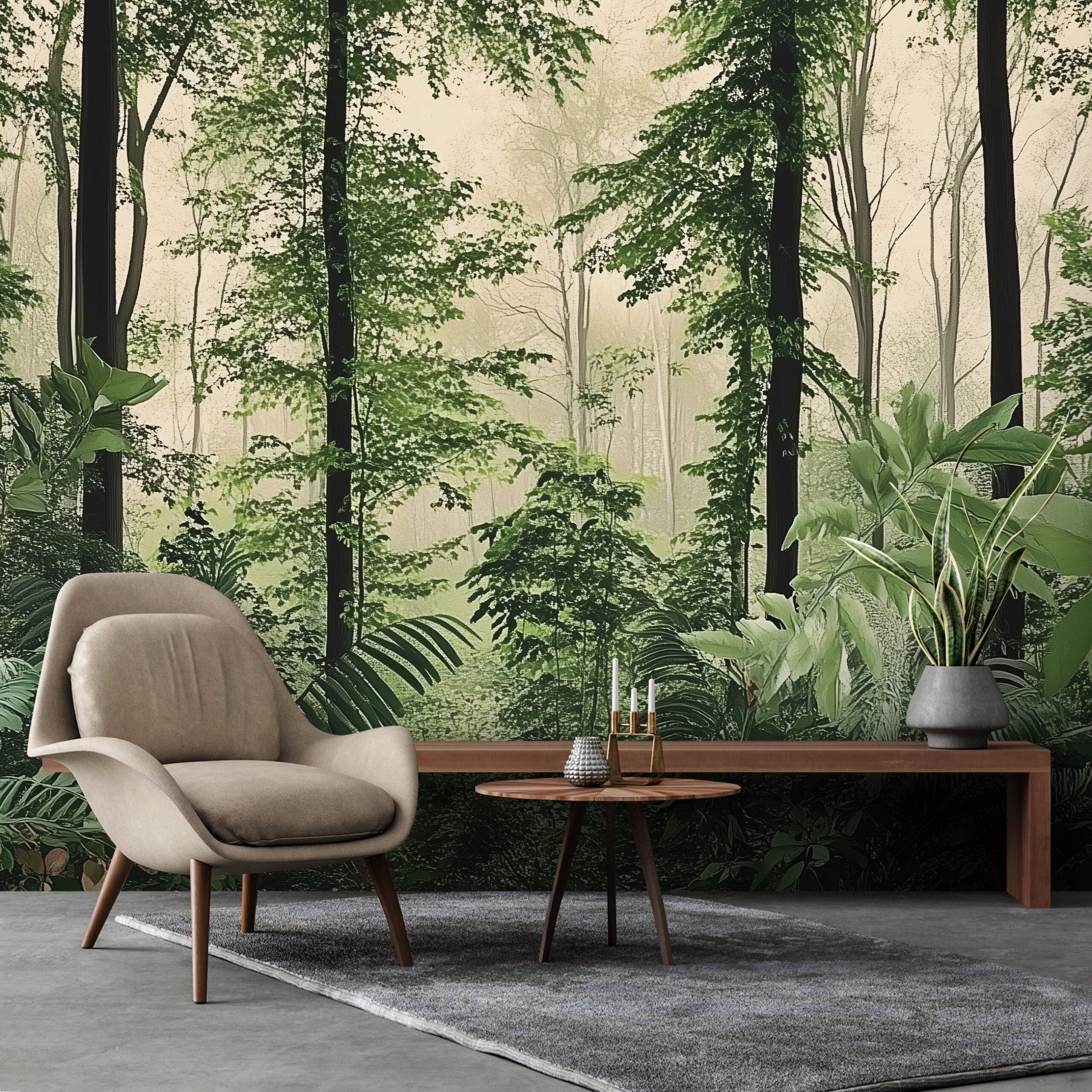 Zöld erdei fotótapéta – a természet frissességét és a lombkorona életteli hangulatát hozza a belső terekbe. A magas fák és a buja aljnövényzet nyugodt, mégis energikus atmoszférát sugároz. Ideális választás azoknak, akik otthonukba szeretnék csempészni az erdő békéjét és nyugalmát.