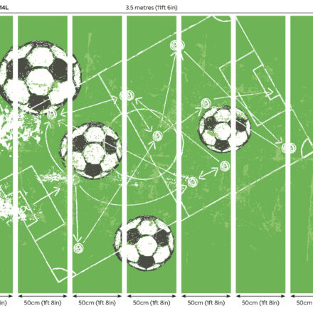 Zöld focilabdás fotótapéta, mely tökéletes dekoráció focirajongó fiataloknak.