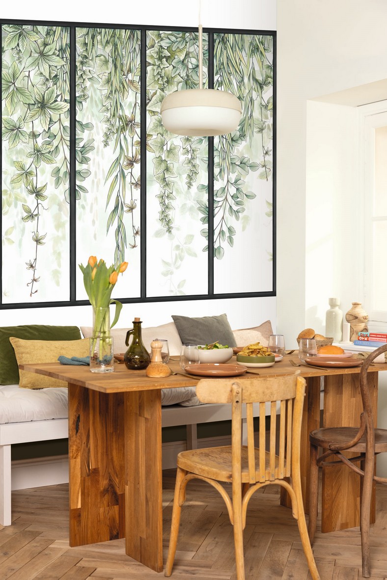 A Zöld futónövényes ablakos fotótapéta egyedi módon hozza be otthonodba a természet látványát. Az indák és zöld növények úgy jelennek meg, mintha egy nagy ablakon át tekintenél ki egy buja kertre. A letisztult fekete keretezés modern, loft hangulatot teremt, míg a lágy zöld árnyalatok nyugalmat és frissességet sugároznak. Ideális nappalikba, étkezőkbe vagy dolgozószobába, ahol a természet közelségét és az elegáns megjelenést egyszerre szeretnéd élvezni.