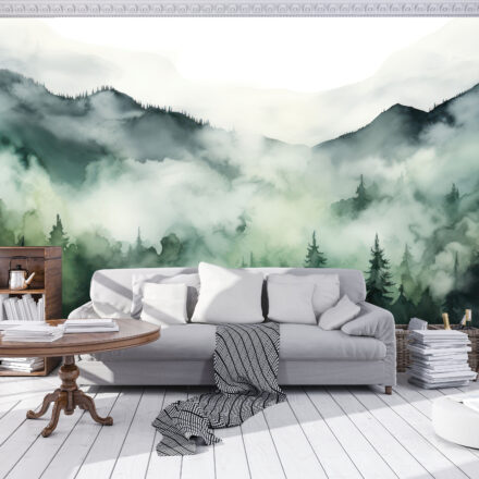 Zöld hegyvonulatokat ábrázoló fotótapéta, melynek mintája akvarell festmény formájában jelenik meg a fotótapétán. Harmonikus nyugalom árad a képből, melyet bátran használhatsz hálószoba vagy nappali dekorálására is.