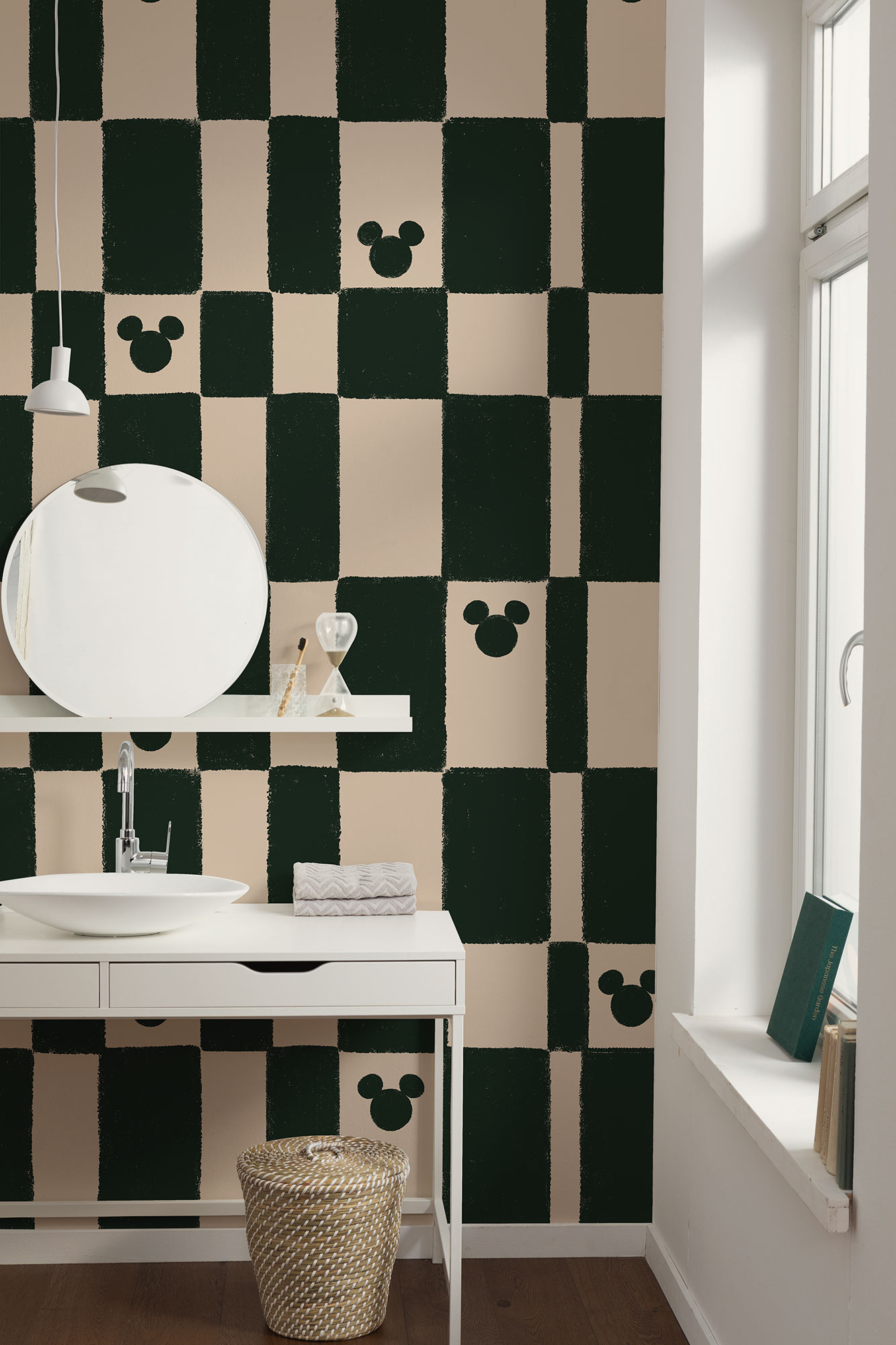 Zöld kockás Disney fotótapéta Mickey egérrel letisztult geometrikus mintáját finoman elrejtett Mickey-sziluettek teszik játékossá. A kontrasztos színek és a visszafogott dizájn elegánsan ötvözik a modern stílust a Disney varázsával. Tökéletes választás gyerekszobába, tiniszobába vagy akár egy kreatív dolgozósarokba – ahol a stílus és a nosztalgia találkozik.