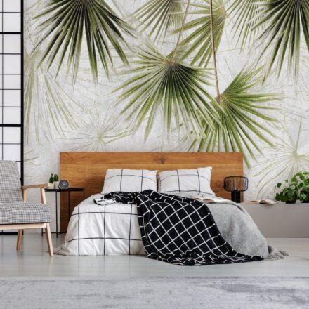 Zöld pálmalevél mintás fotótapéta, mely trendi mintájával modern külsőt kölcsönöz az enteriőrnek. Remekül mutat nappaliban és hálószobában egyaránt.