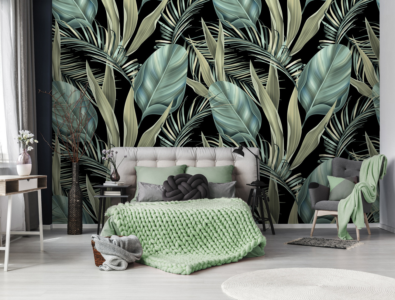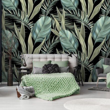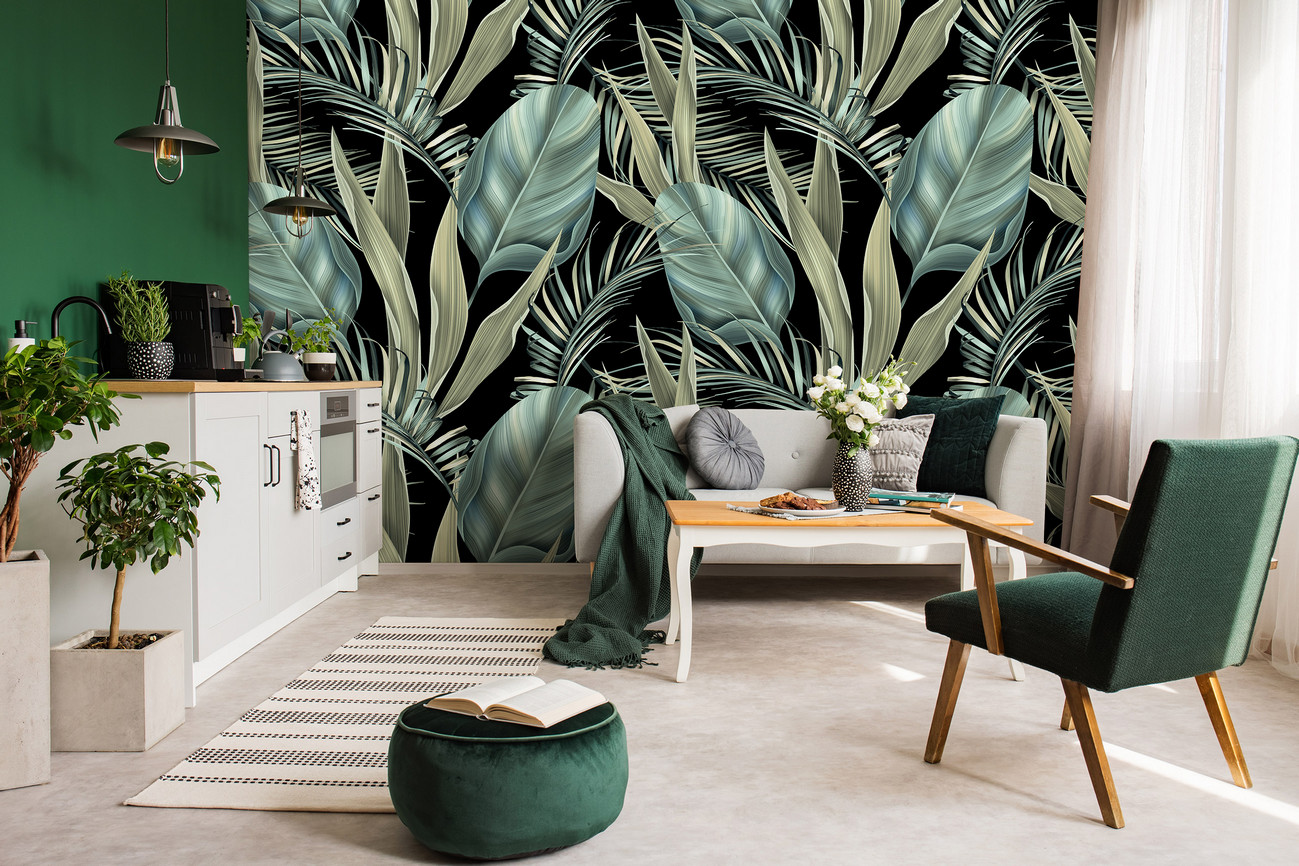 Látványos, egzotikus pálmaleveles fotótapéta. Hozd el a trópusok hangulatát a tapéta sűrű levelmintájával és zöld színeivel.