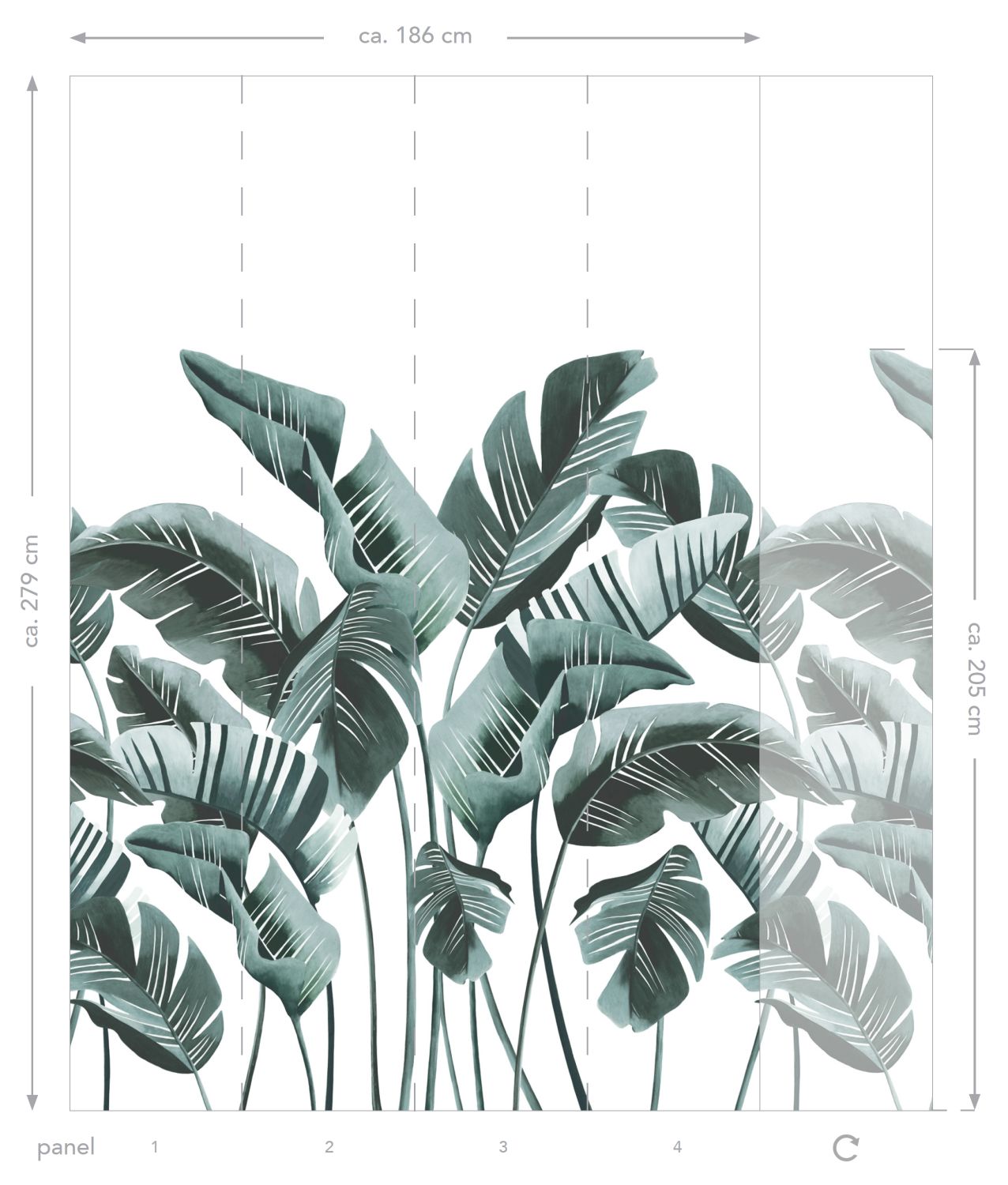 Teremts egzotikus légkört a orrhonodban a nagyméretű banánlevelekkel, melyek a fali posztert dekorálják. Az izgalmas levélminta modern formában jelenik meg a poszteren.