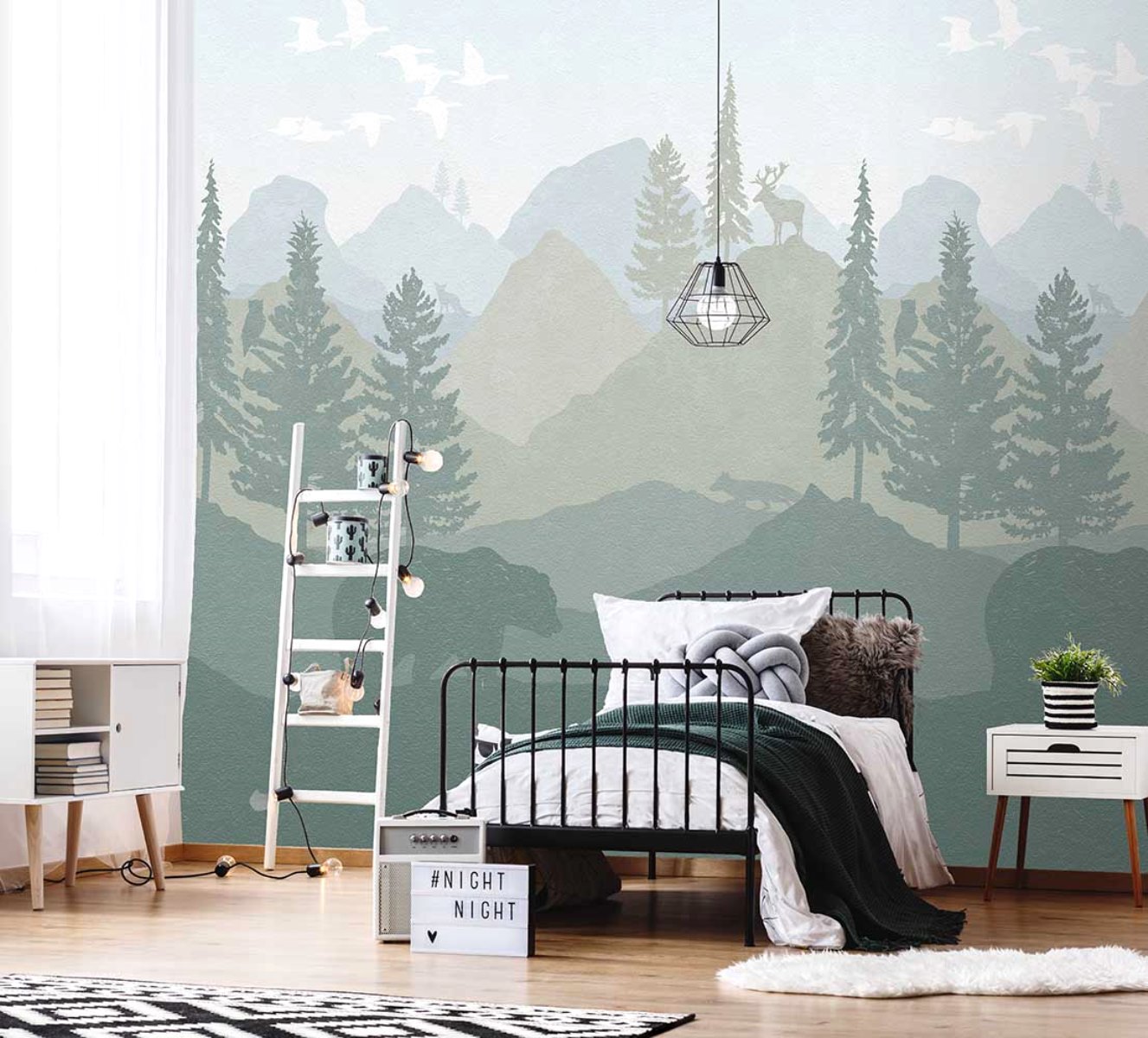 A skandináv lakberendezésre jellemző letisztult színvilág és természetközeli minták jellemzik a fotótapétát. A hegyvidékes tájat megjelenítő kép megnöveli a teret és végtelen barangolásokra csábít.