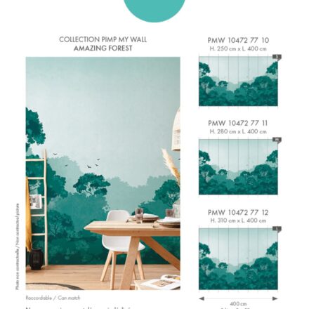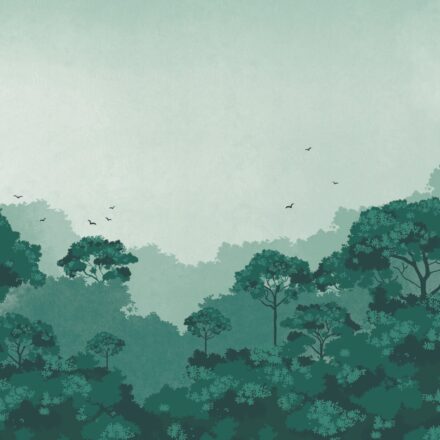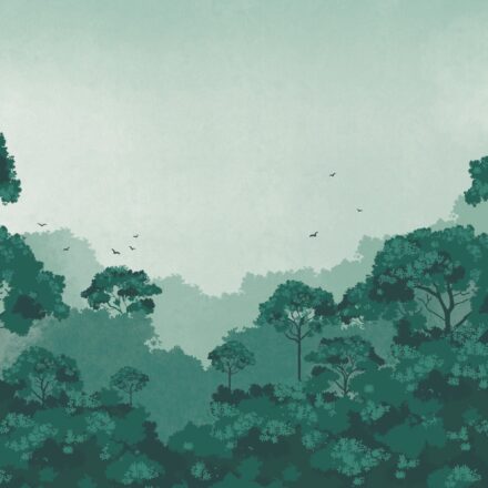 Zöldellő erdő fotótapéta, melynek meghatározó atmoszférája csodálatos látványt nyújt a falon.